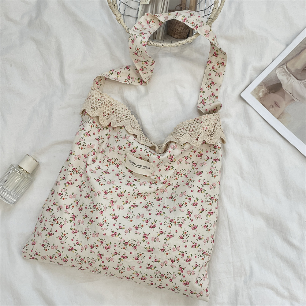 54211 여름 스플 라이스 꽃 가방 여성의 새로운 한국 스타일 캐주얼 겨드랑이 가방 통근 어깨 크로스 바디 캔버스 가방