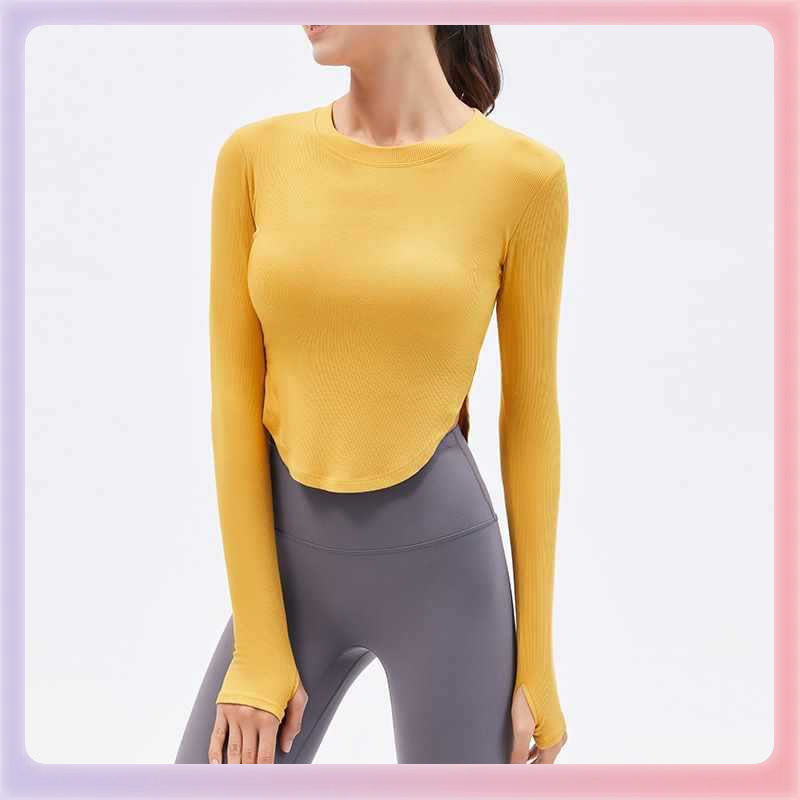✅ 2023년 신형 여성용 골지 스포츠 상의, 가슴 패드가 있는 피트니스웨어, 누드 런닝, 긴팔, 타이트, 슬리밍 요가스토어 가기