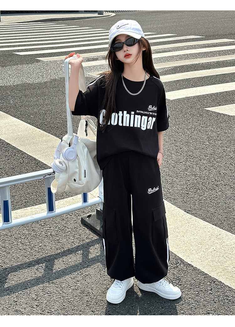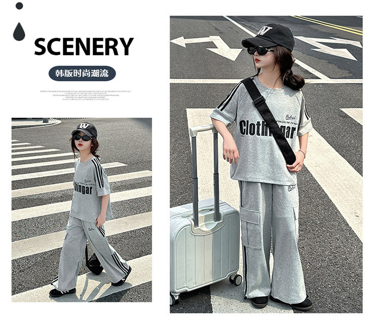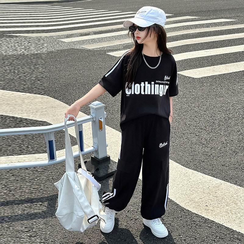여아 여름 의류 세트 2025 새로운 스타일 중대형 아동 패션 아동 반팔 캐주얼 운동복 투피스 세트 유행스토어 가기