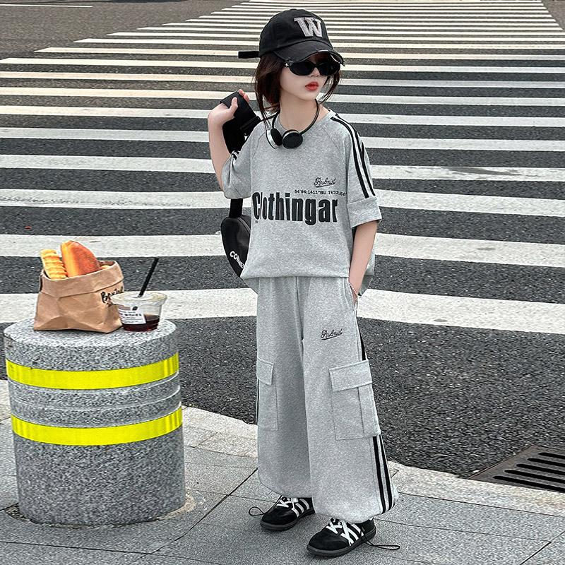 여아 여름 의류 세트 2025 새로운 스타일 중대형 아동 패션 아동 반팔 캐주얼 운동복 투피스 세트 유행