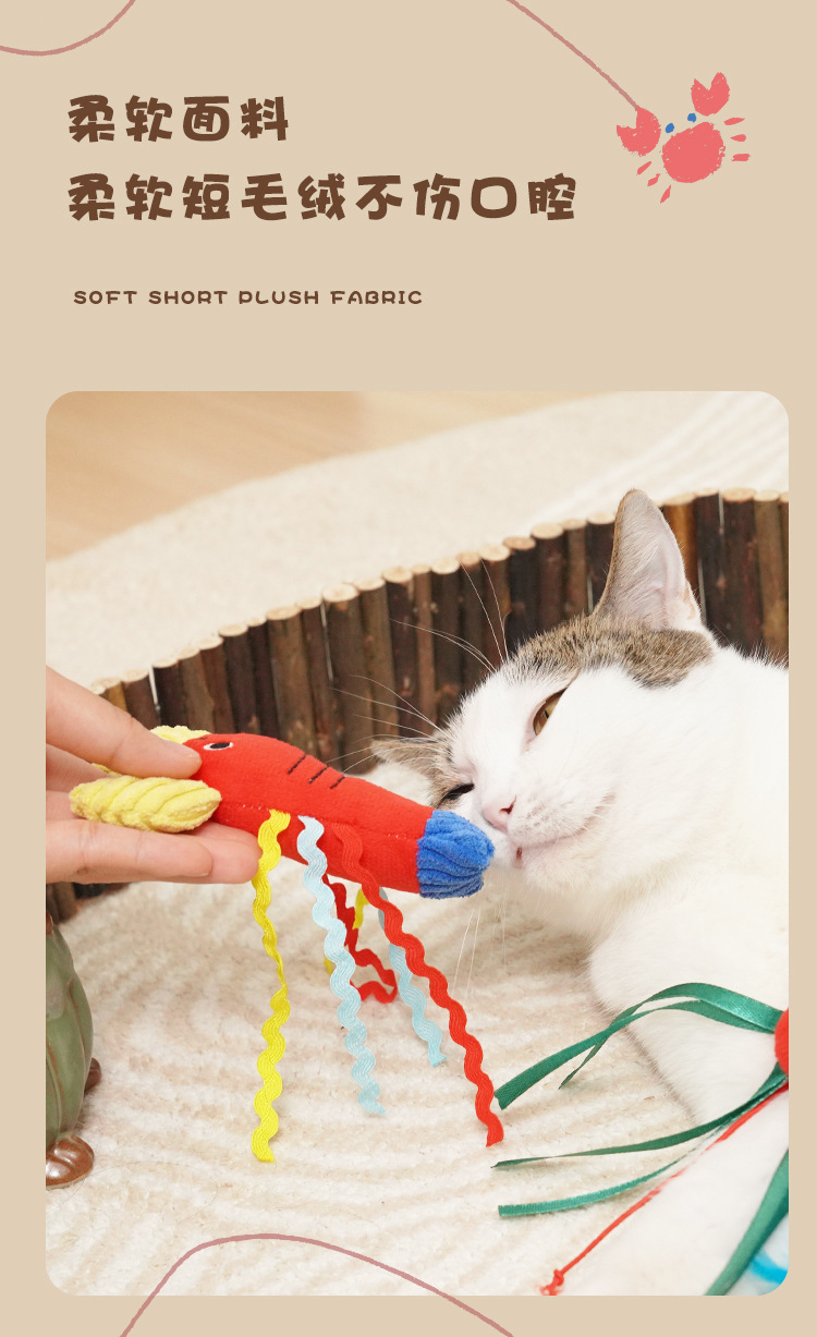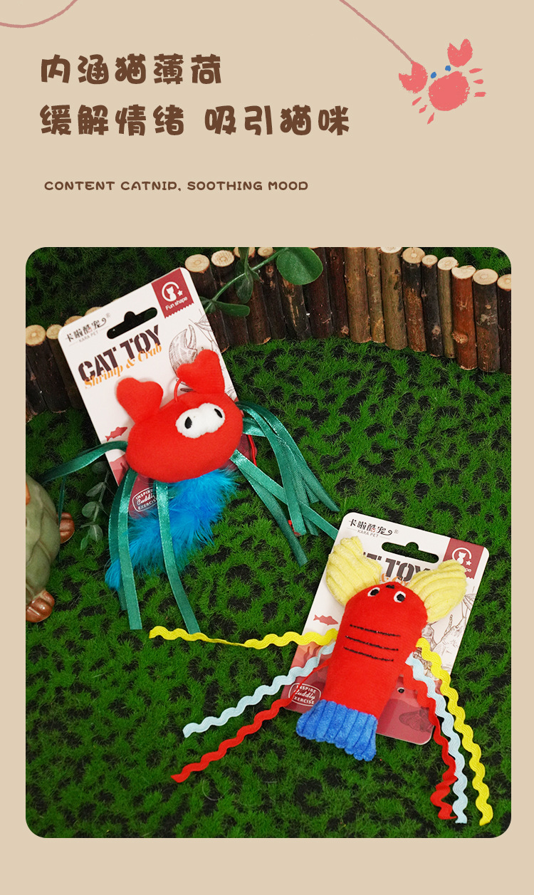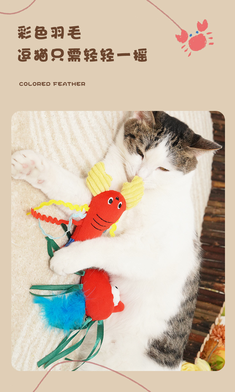 ✅ 고양이 장난감 민트는 자기 자신을 즐기고 지루함을 해소합니다 새우 군인과 게 군인 다채로운 깃털 고양이 놀리는 스틱 고양이를위한 새끼 고양이 플러시 장난감스토어 가기