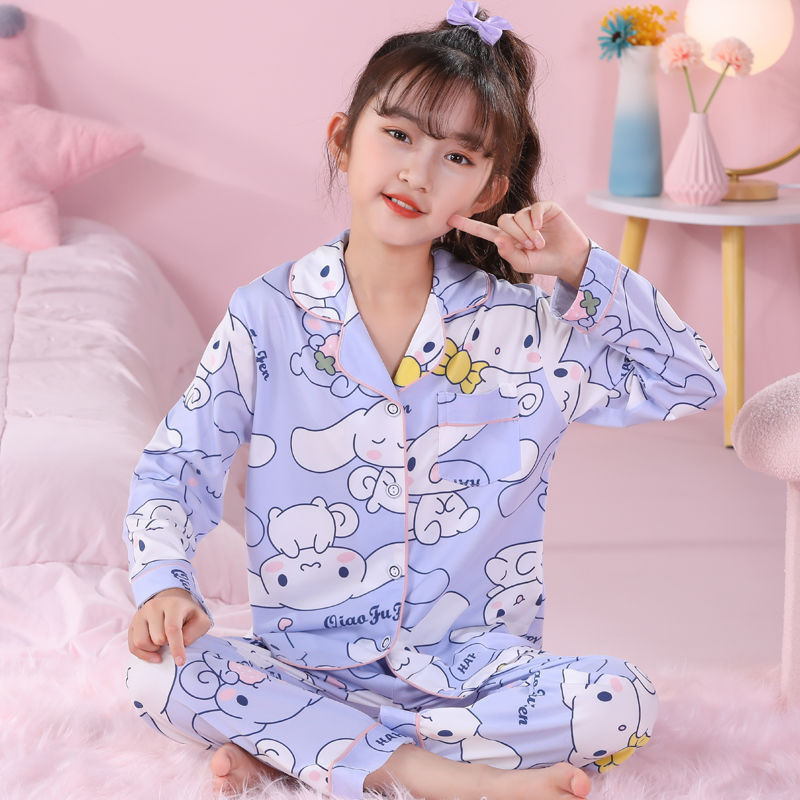 봄, 가을 여아용 아동 잠옷, 중대형 아동용 긴팔 여름 여아용 베이비 가디건, 에어컨 의류, 여아용 가정복 세트스토어 가기