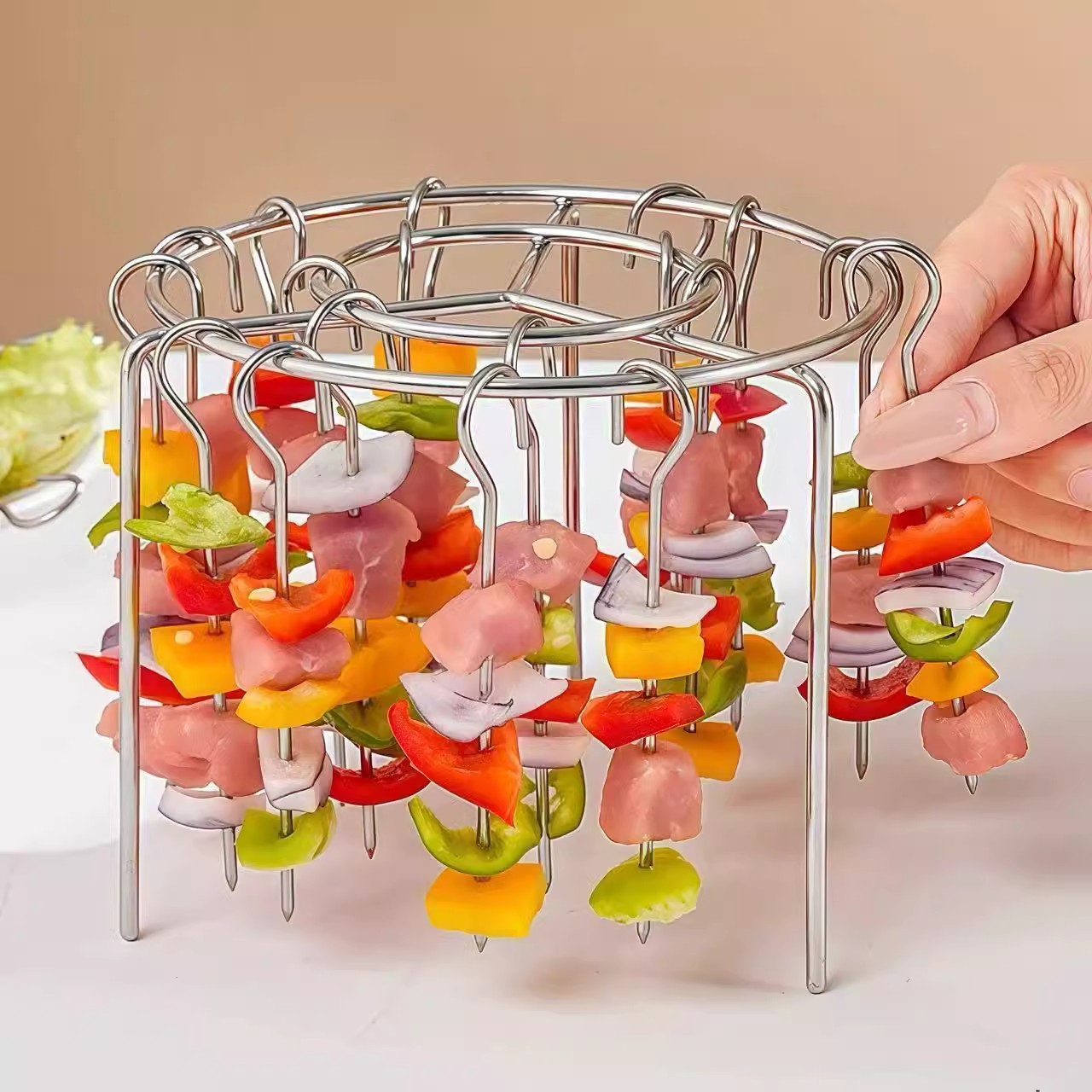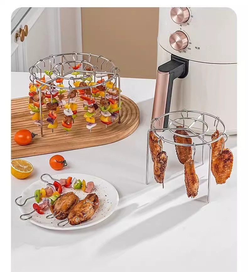 스테인레스 스틸 바베큐 랙 에어 프라이어 수직 그릴 특수 원형 바베큐 가정용 오븐 주방 꼬치 그릴