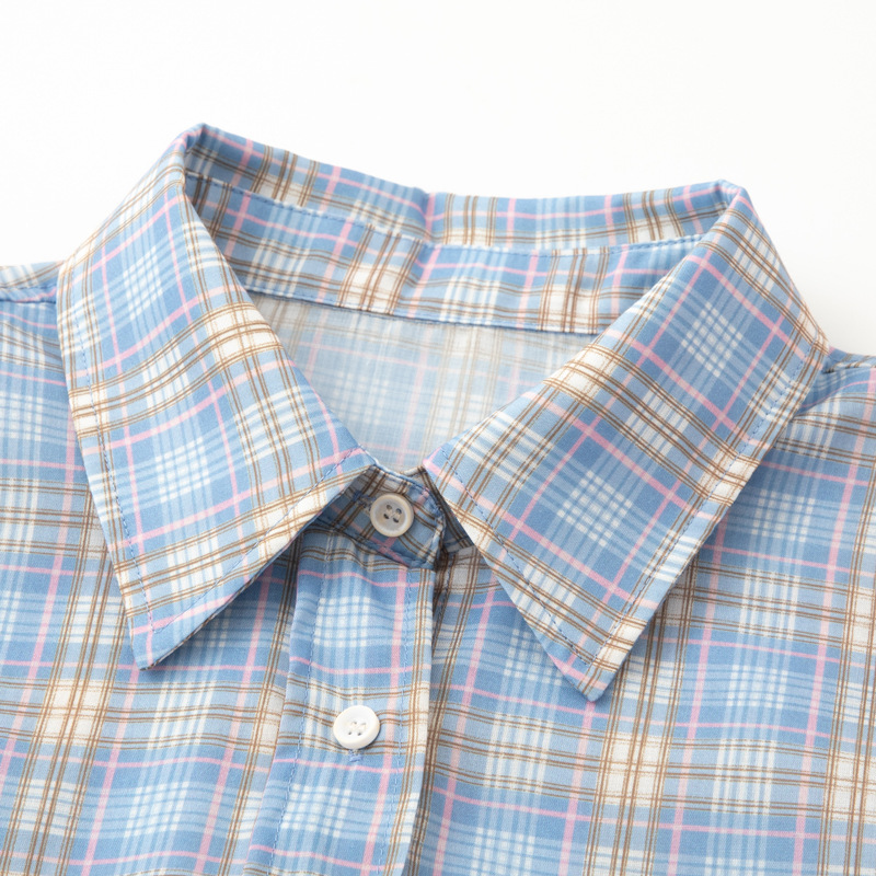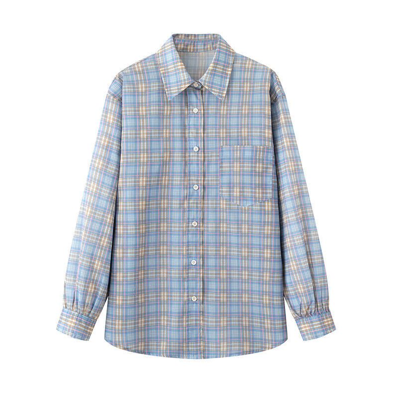 2025 년 여름 새로운 도착 올매치 유행 캐주얼 체크 무늬 느슨한 슬리밍 긴 소매 셔츠 탑 여성 4G4220871