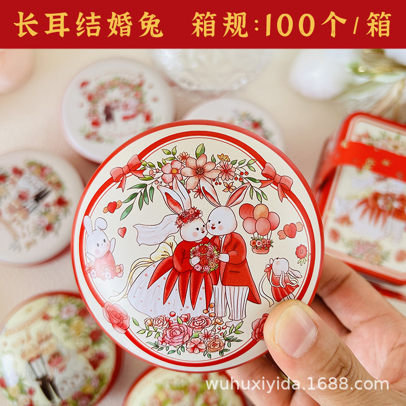 대형 라운드 마카롱 플랫 드럼 깡통 웨딩 사탕 상자 웨딩 사탕 포장 웨딩 사탕 깡통스토어 가기