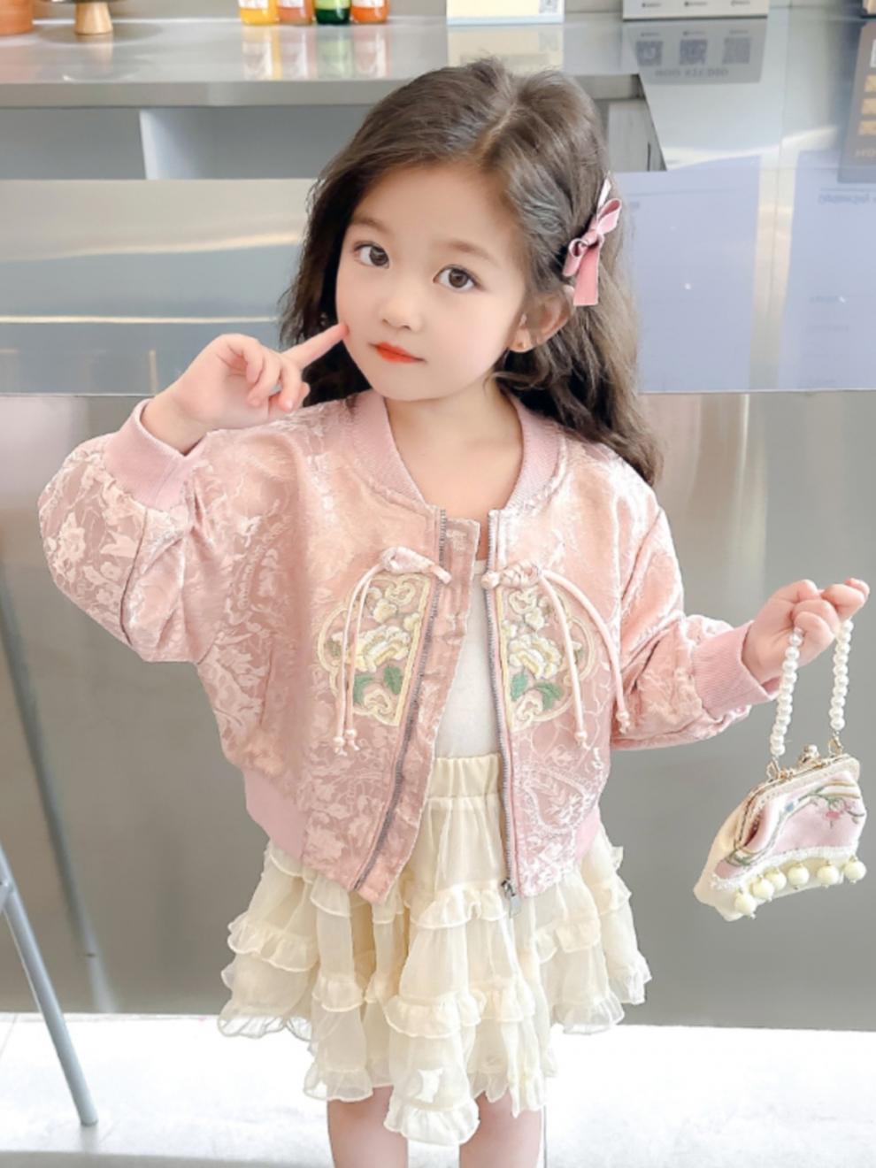 여자 중국 스타일 봄 재킷 봄, 가을 2025 새로운 어린이 유행 재킷 여자 중국 스타일상의