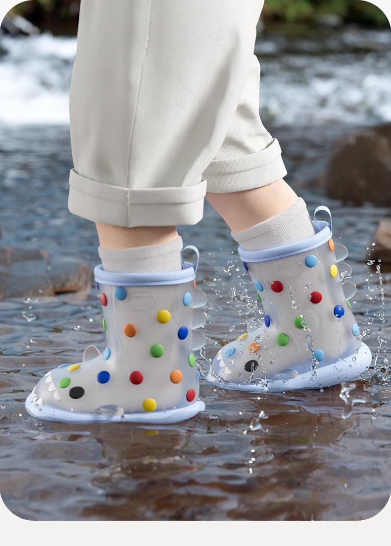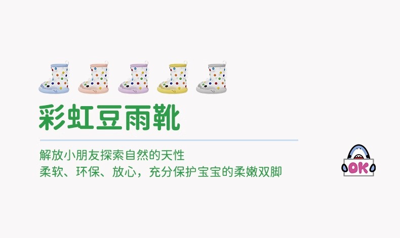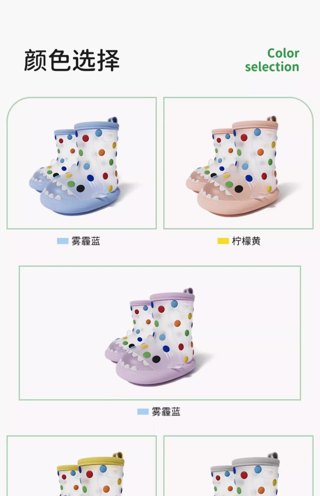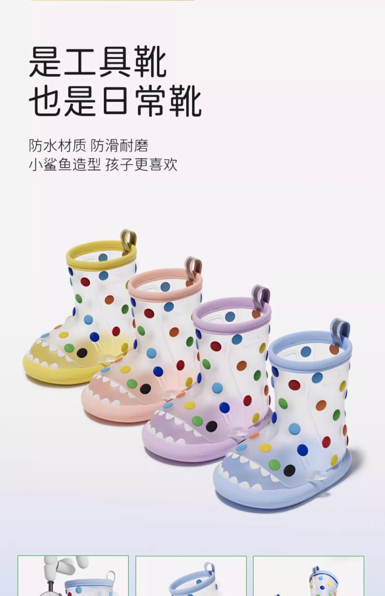 작은 빨간 책 TikTok 폭발 무지개 콩 상어 어린이 장화 어린이 비옷 2024 세트 새로운 아기 장화스토어 가기