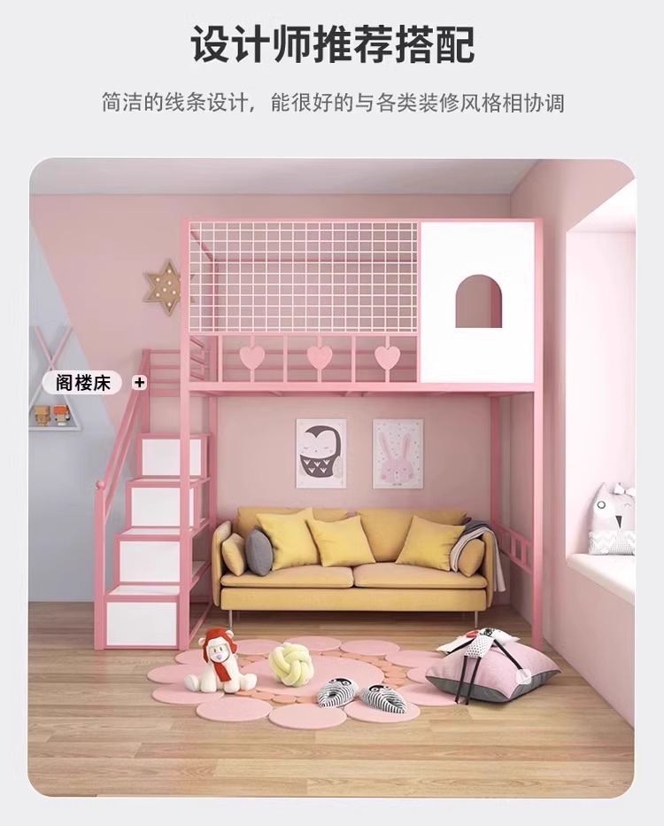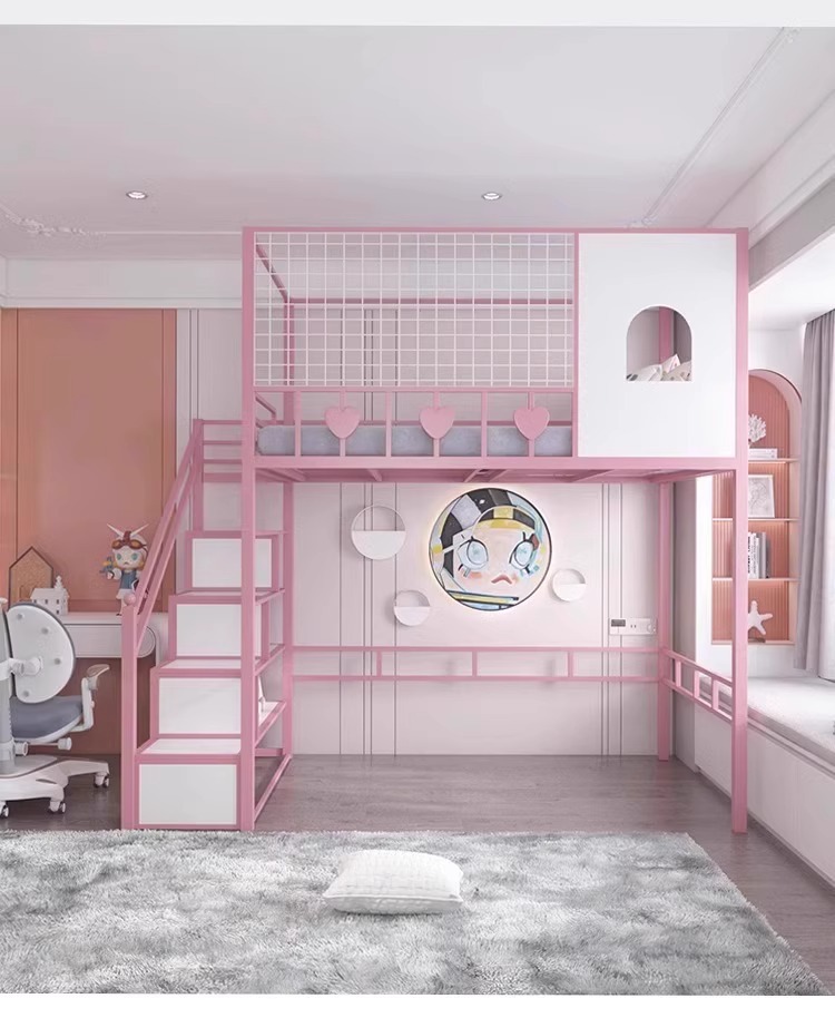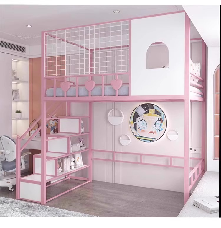 어린이용 로프트 침대, 핑크 공주 침대, 이층 침대, 공간 절약형 복층 침대 시트, 상단 철제 프레임 침대, 이층 침대