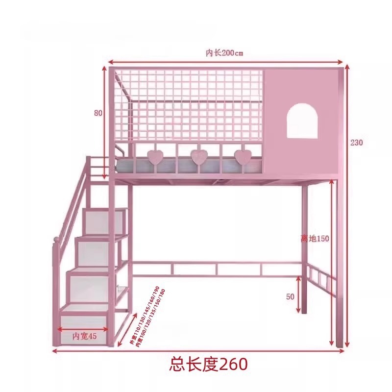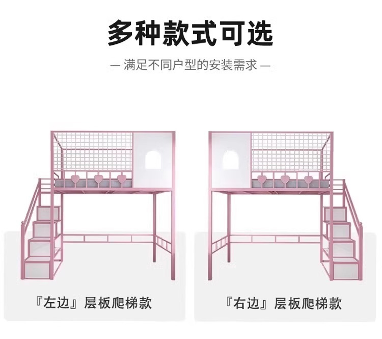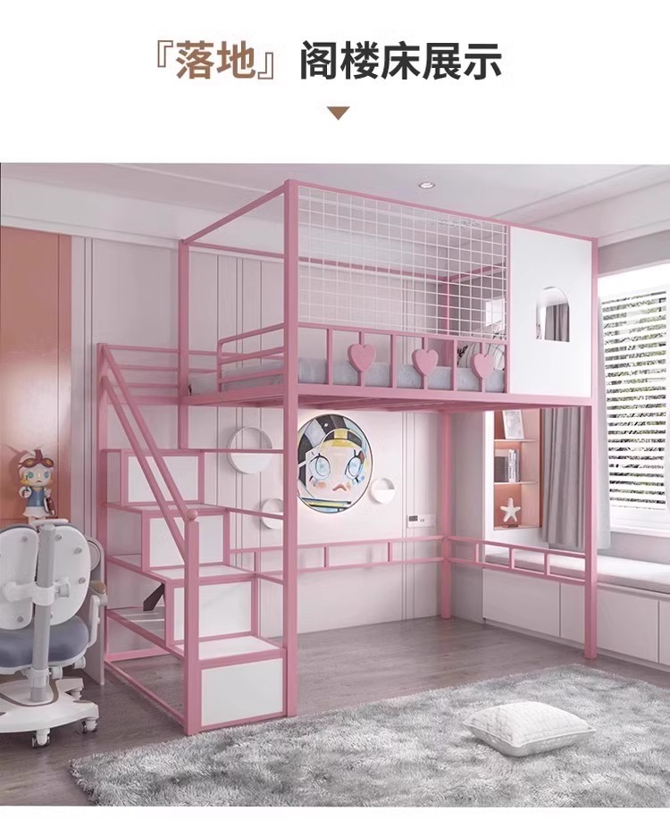 어린이용 로프트 침대, 핑크 공주 침대, 이층 침대, 공간 절약형 복층 침대 시트, 상단 철제 프레임 침대, 이층 침대스토어 가기