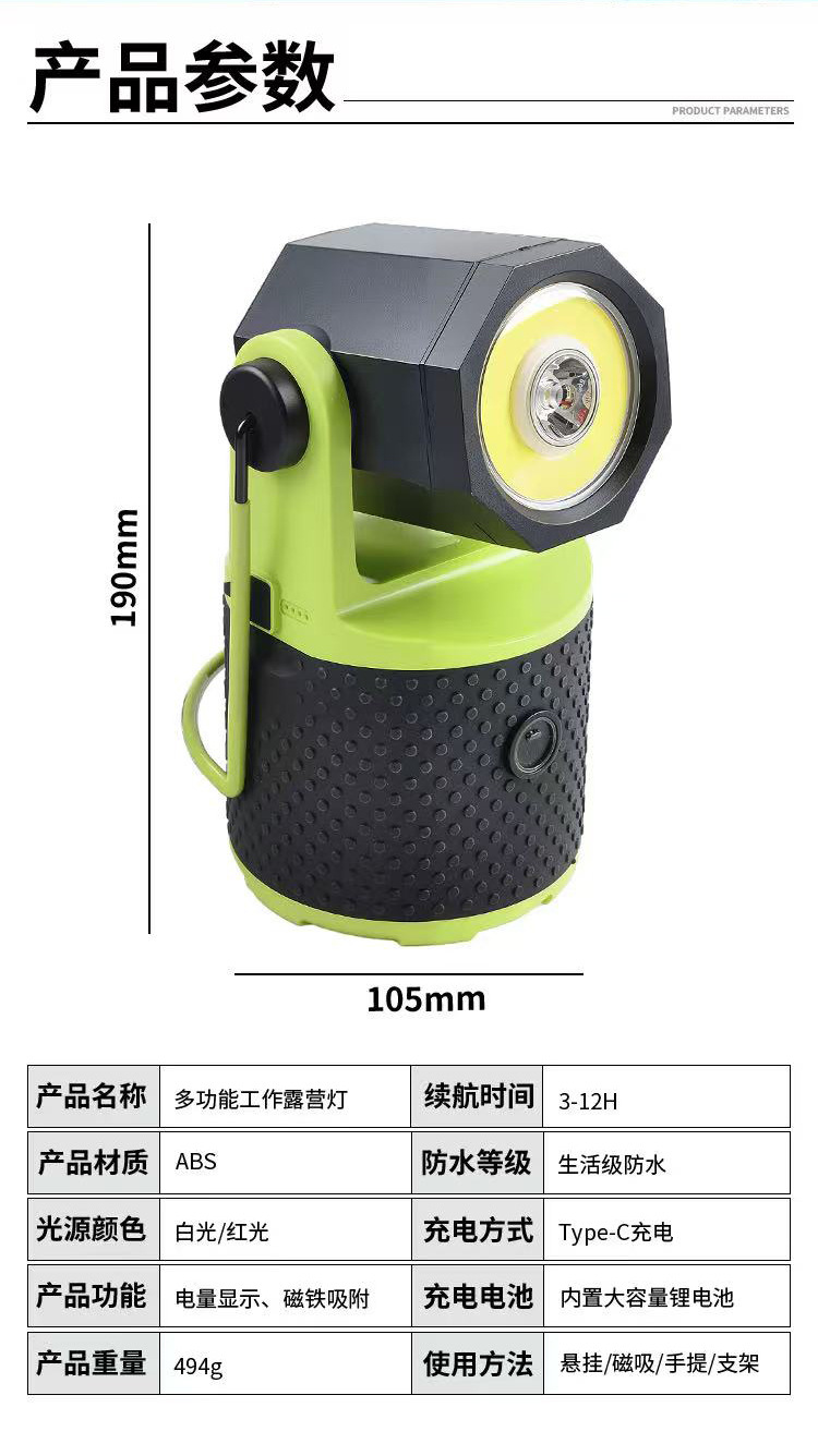 캠핑 램프 태양열 다기능 야외 모바일 조명 램프 휴대용 충전식 조명 램프 서치라이트