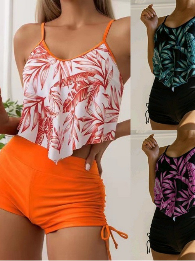 2025 유럽 및 미국 신상 프린트 투피스 수영복 여성용 보수적인 속건성 사각팬티 해외 무역 슬리밍 하이웨이스트스토어 가기