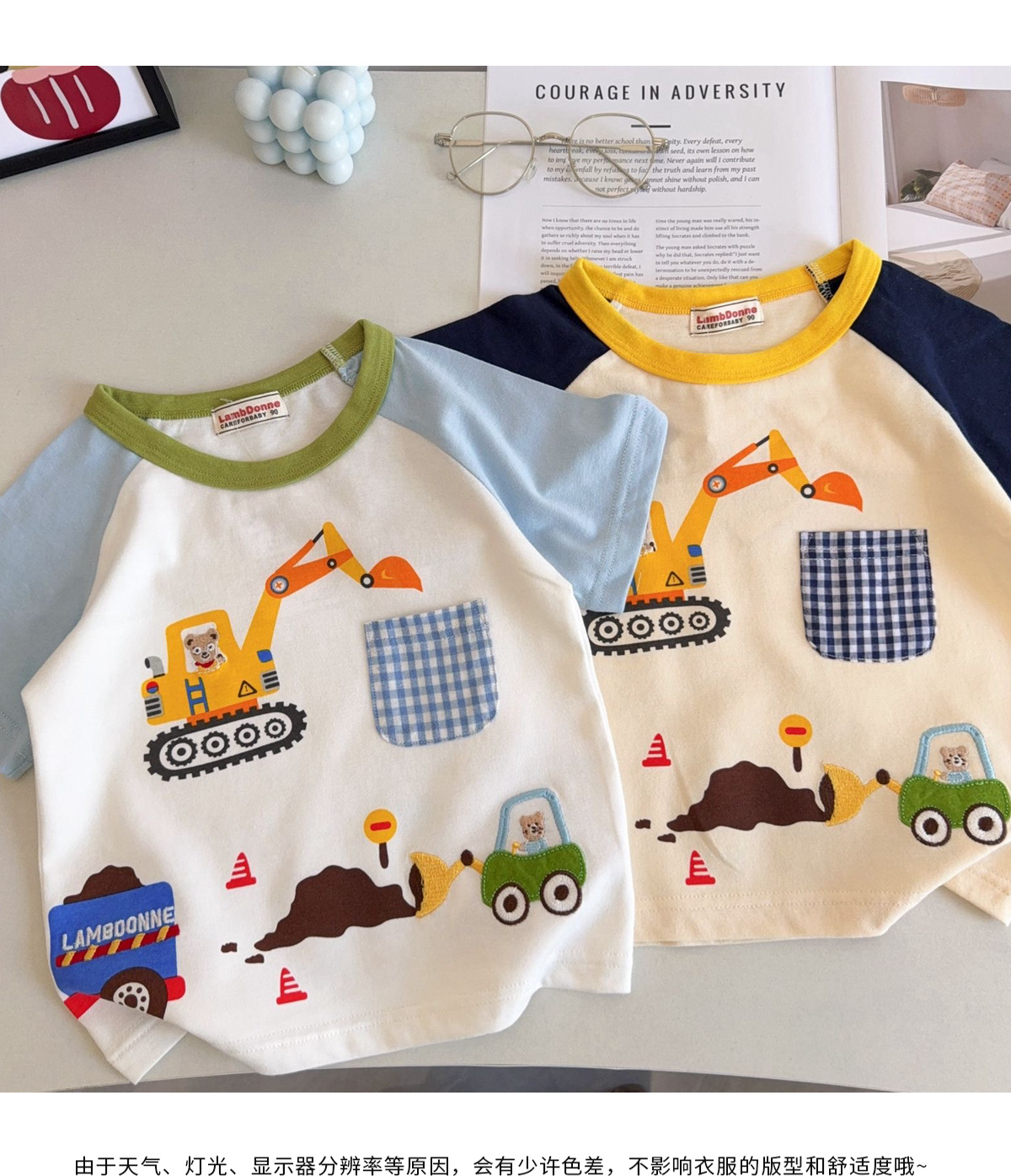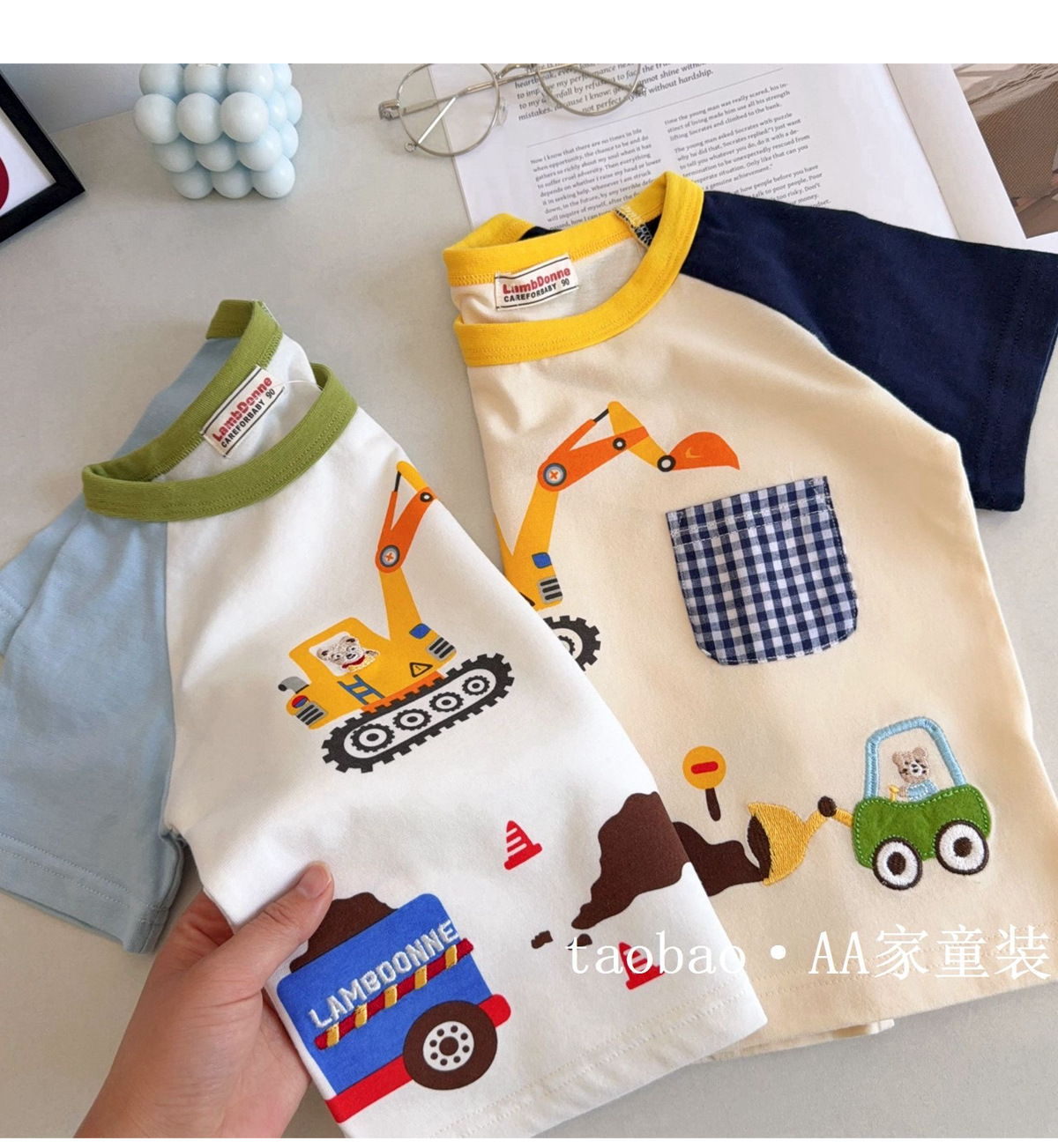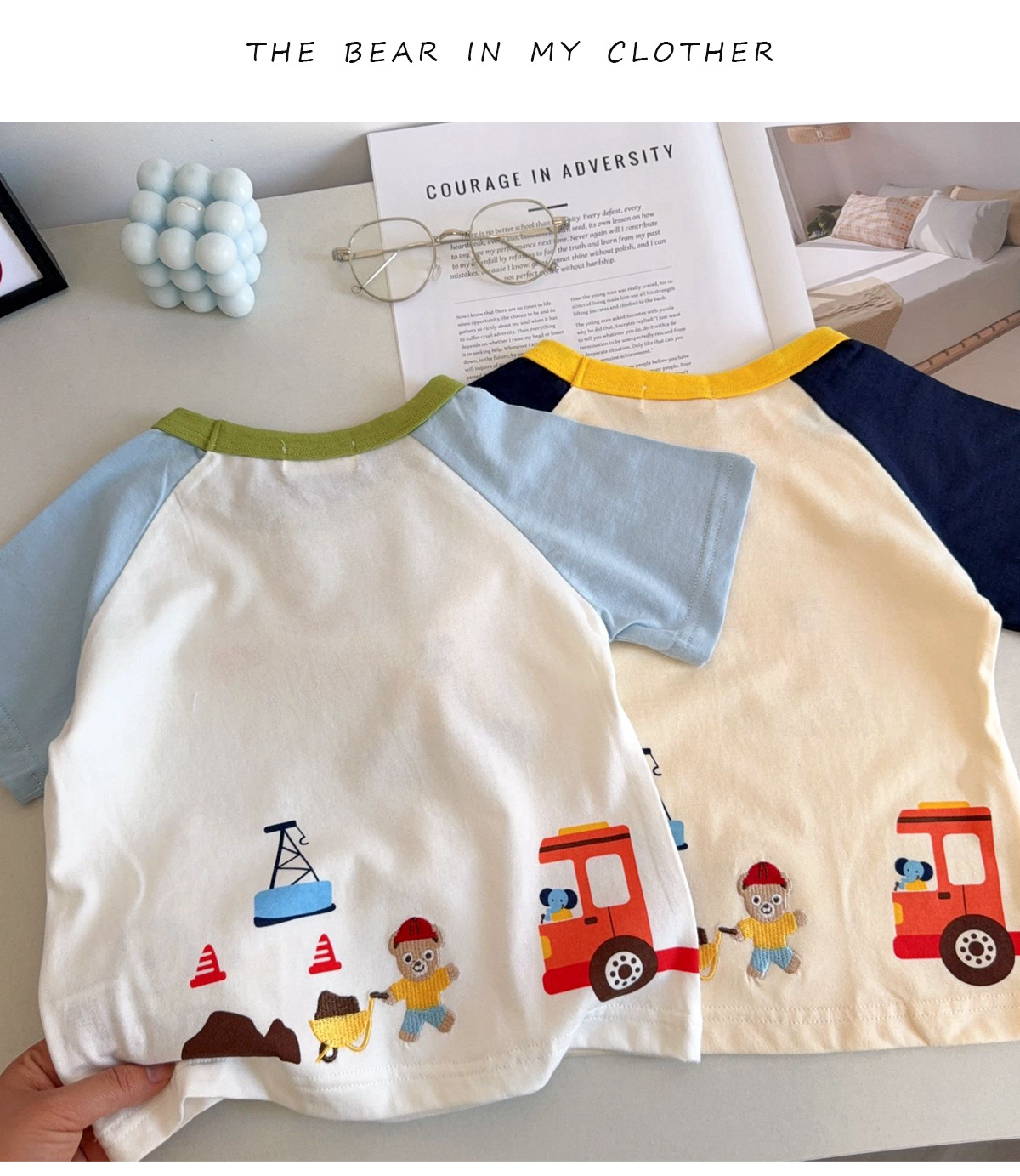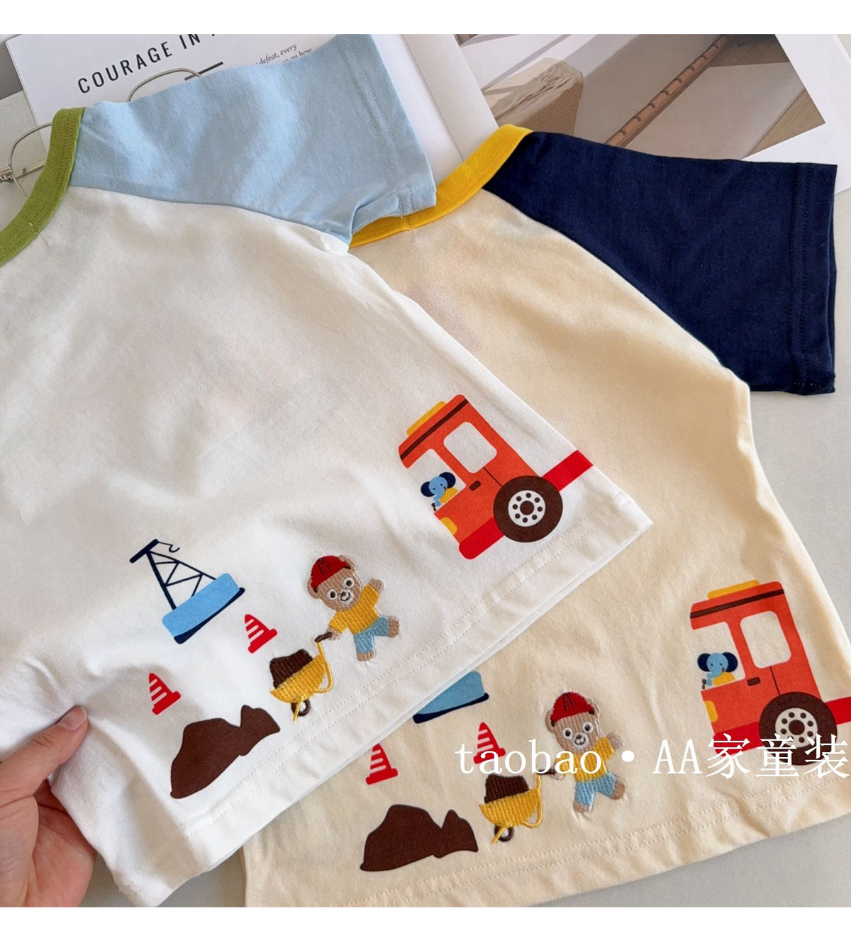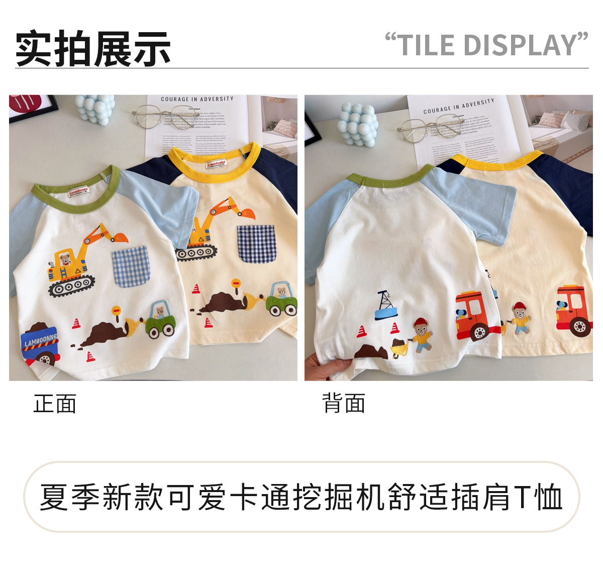 남아 및 여아용 아동용 반팔 면 티셔츠, 유아용 반팔 여름 상의, 얇은 면 T 굴착기스토어 가기