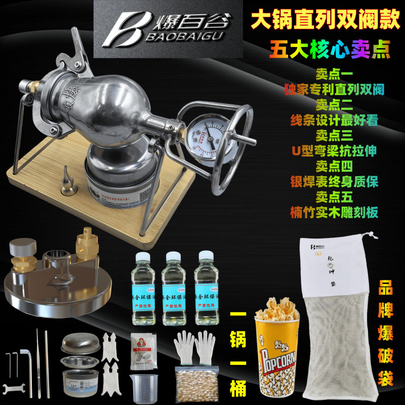 [작동하기 쉬운] 가정용 미니 팝콘 기계 곡물 증폭기 304 스테인레스 스틸 구식 손 폭발스토어 가기