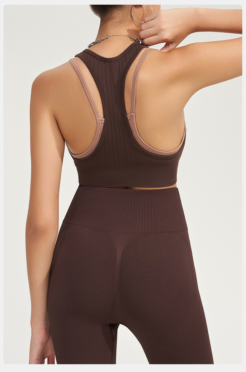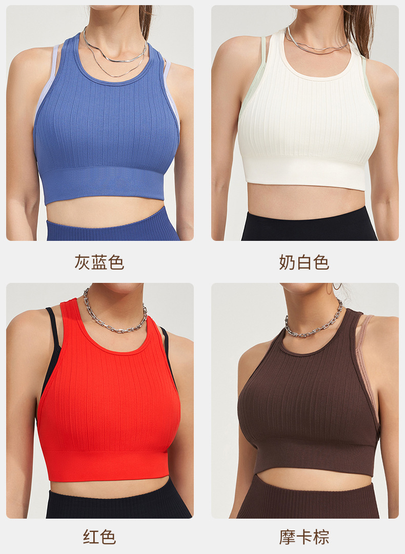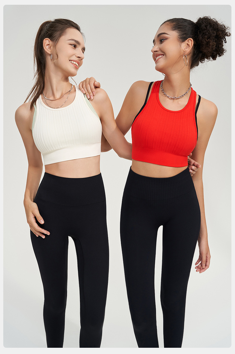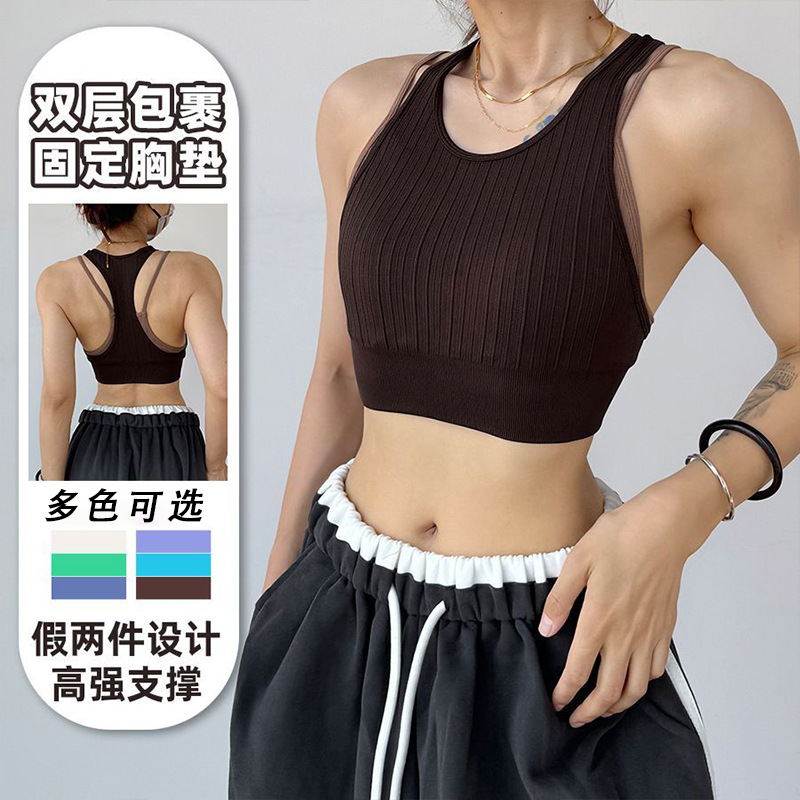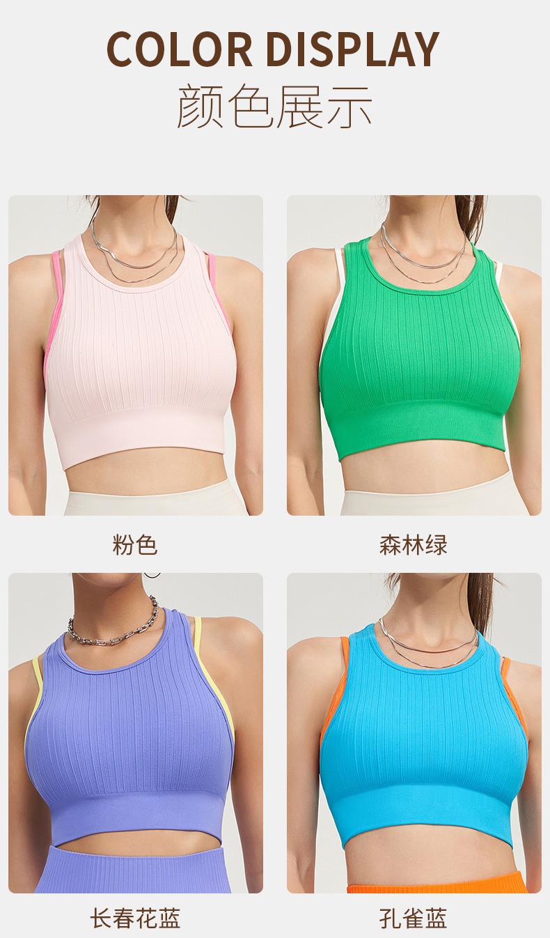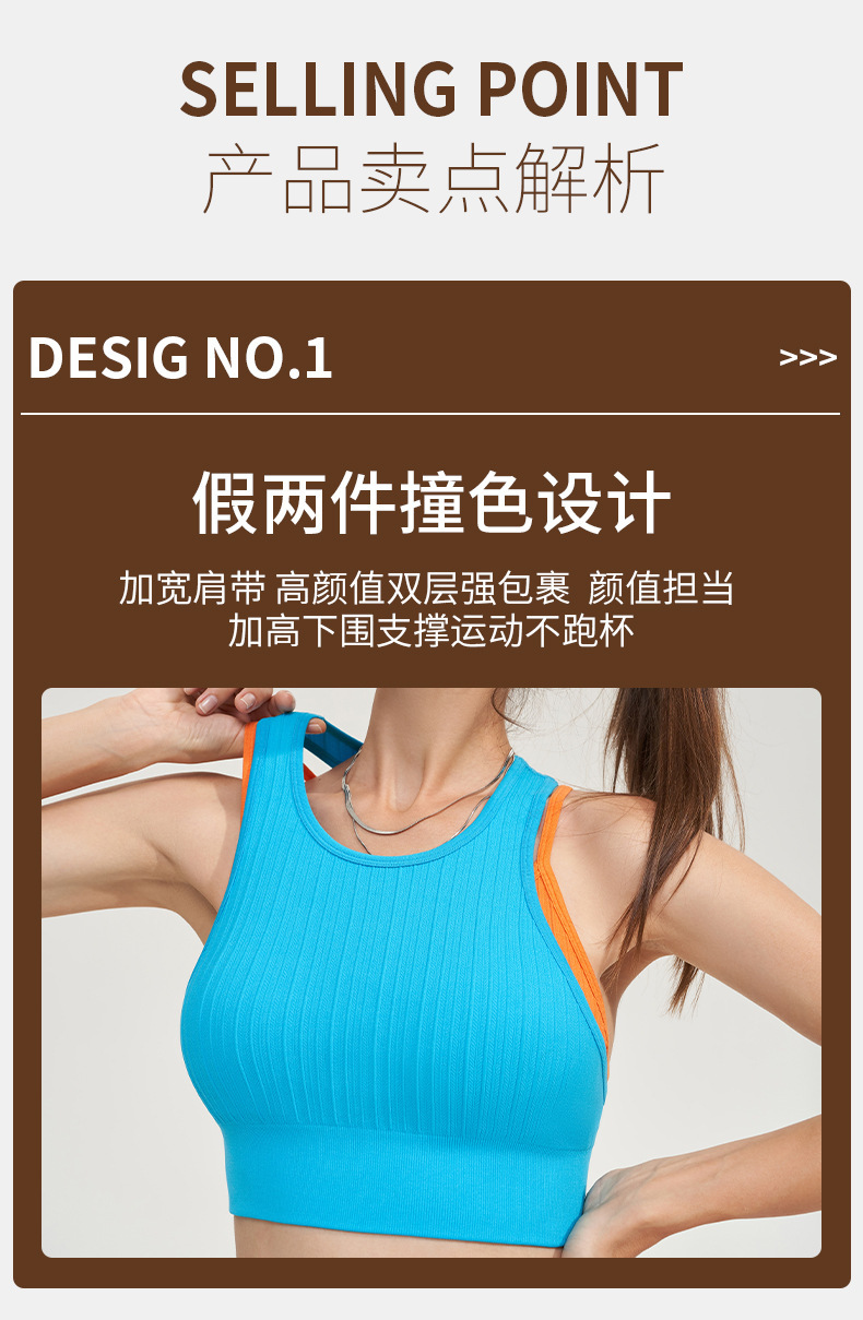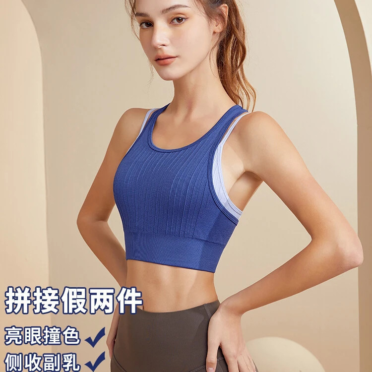 대비 색상 가짜 투피스 여성용 스포츠 브라, 통합 요가 조끼, 통기성 러닝 충격 방지 피트니스 브라