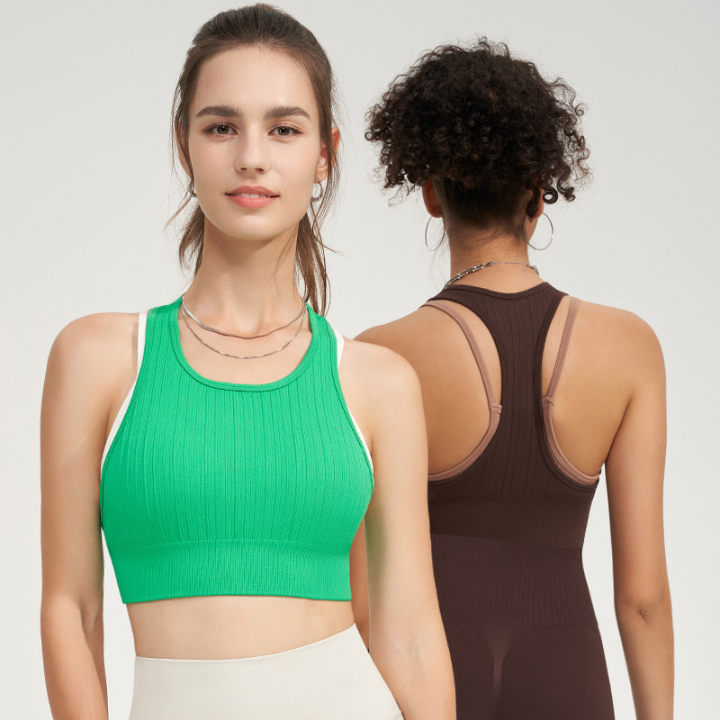 대비 색상 가짜 투피스 여성용 스포츠 브라, 통합 요가 조끼, 통기성 러닝 충격 방지 피트니스 브라스토어 가기
