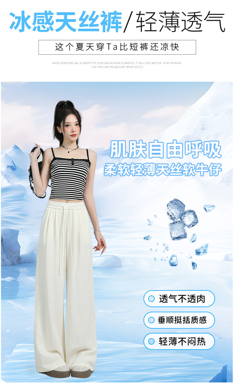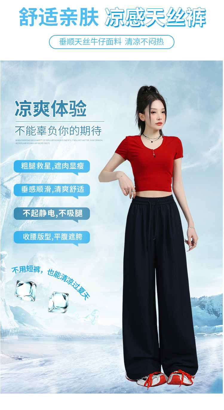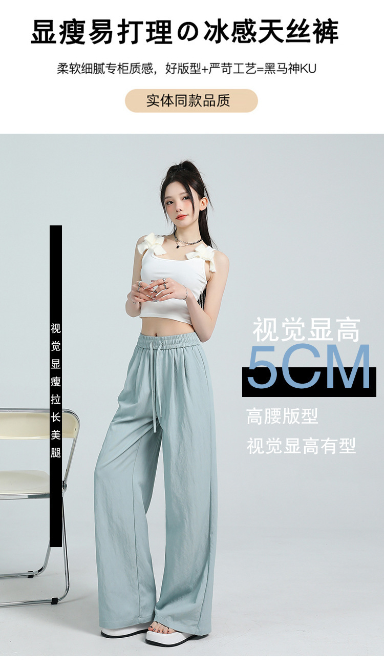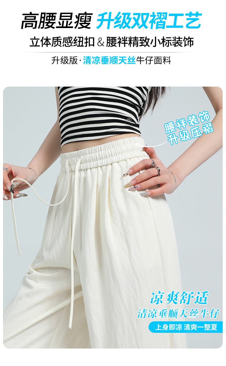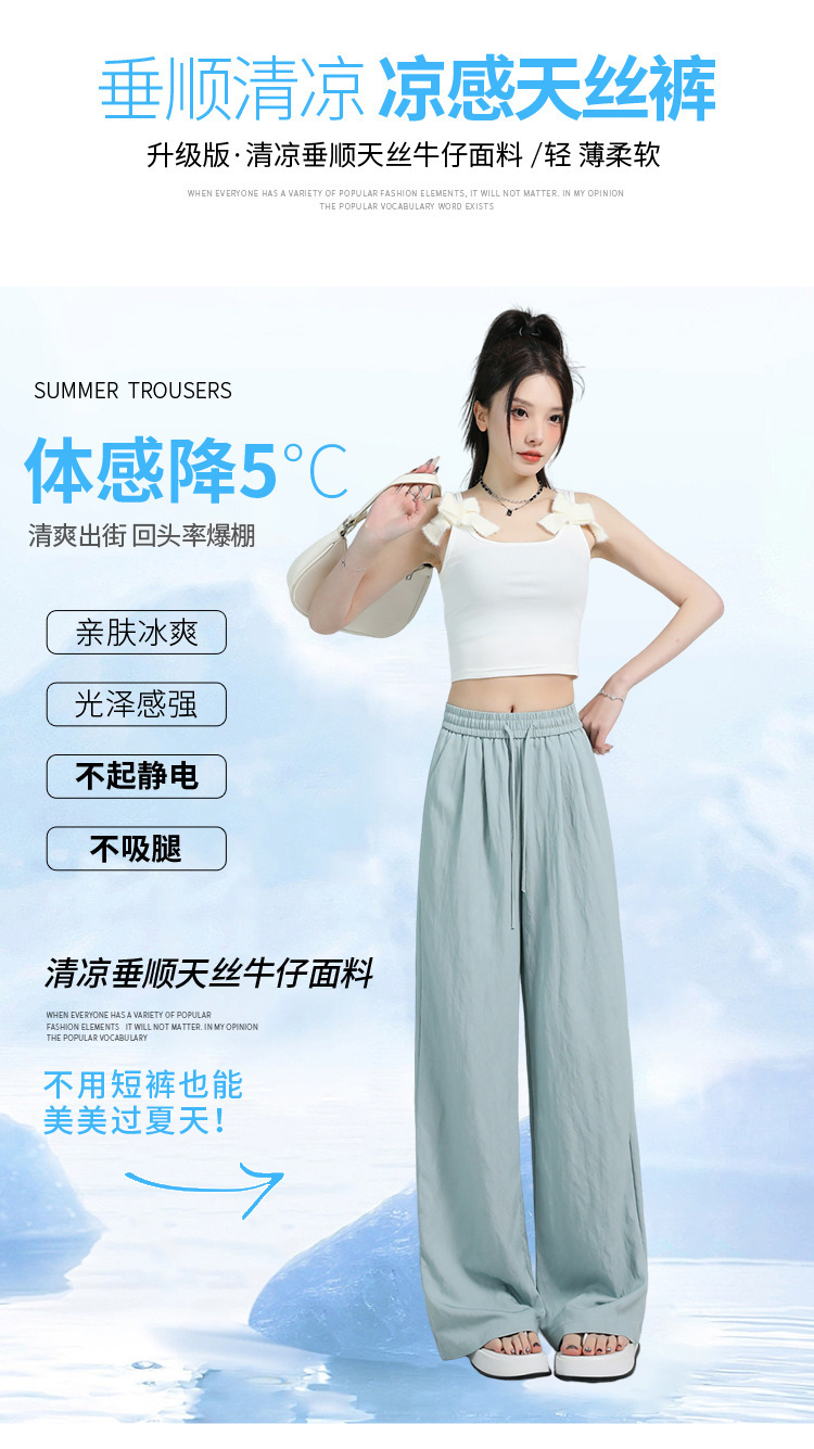 2025夏季天丝薄款阔腿裤防暑冰丝裤女百搭慵懒松弛垂感拖地裤女
