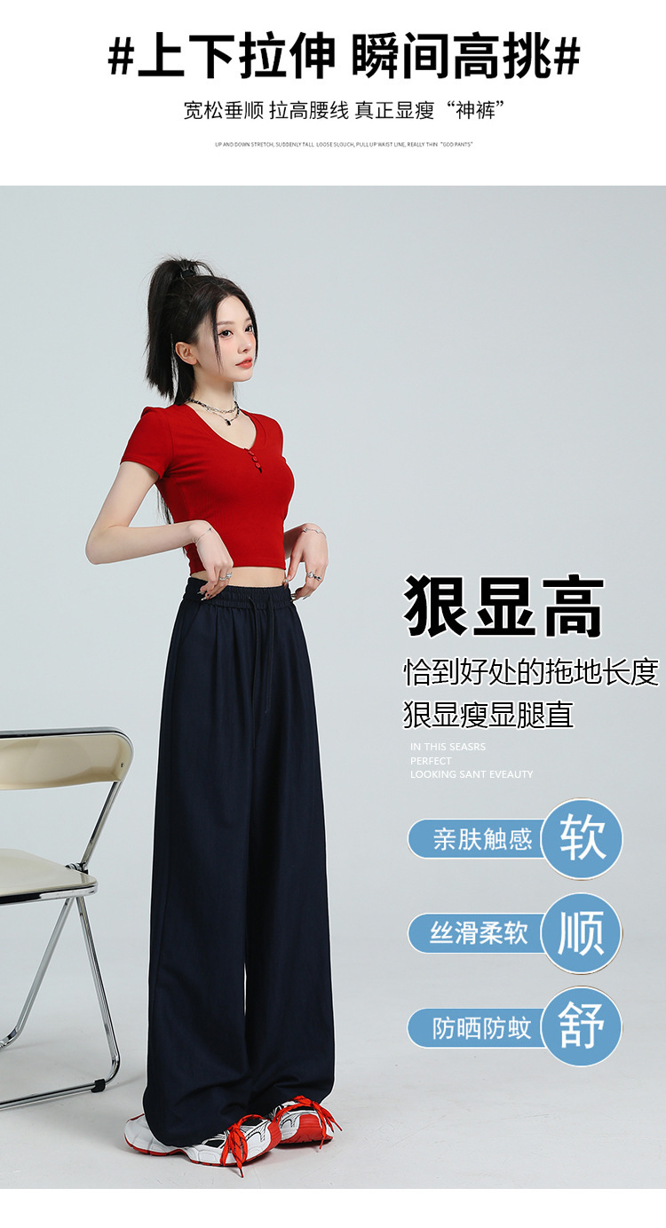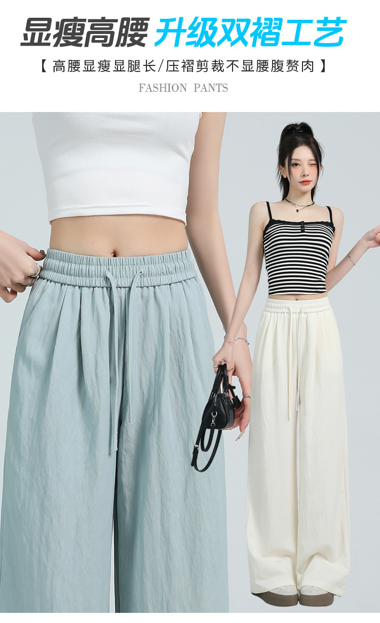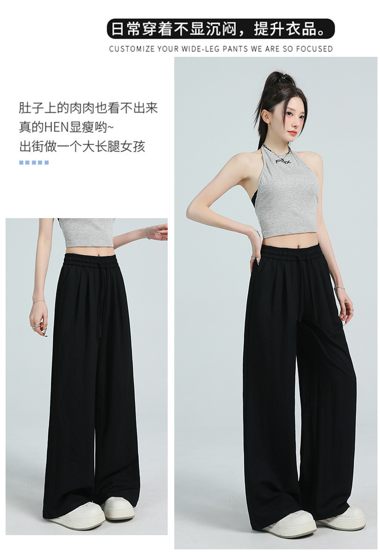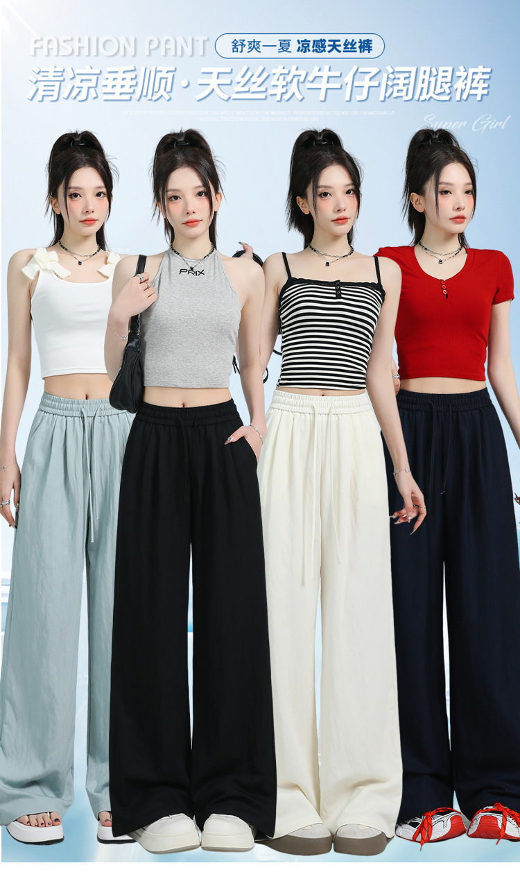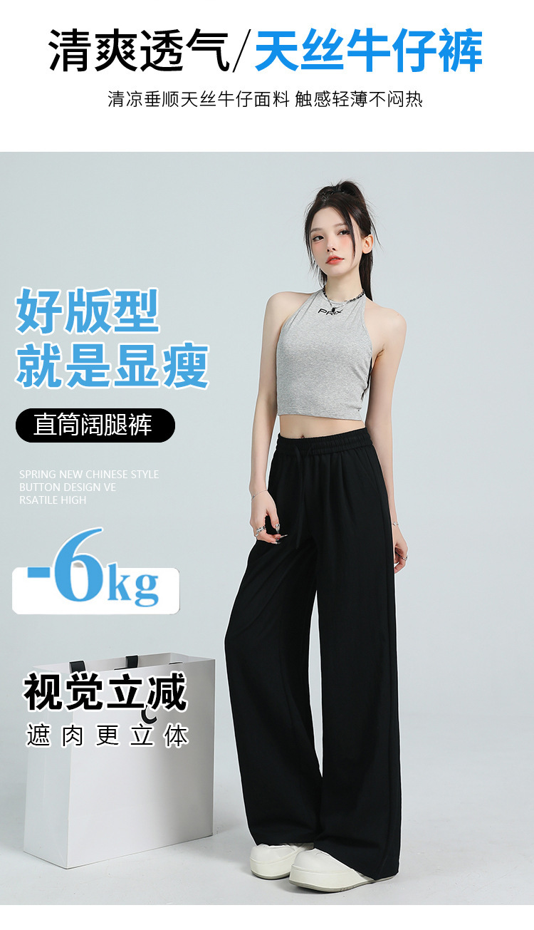 2025夏季天丝薄款阔腿裤防暑冰丝裤女百搭慵懒松弛垂感拖地裤女