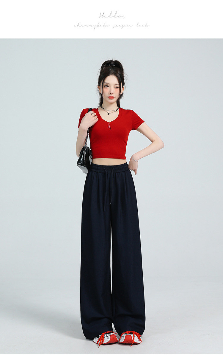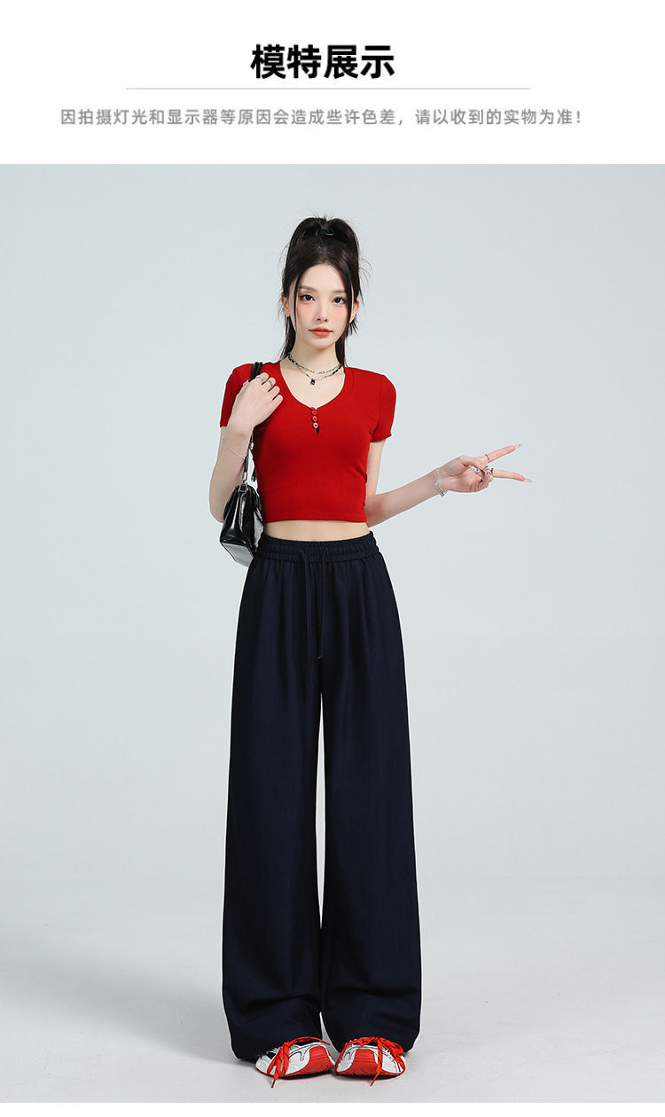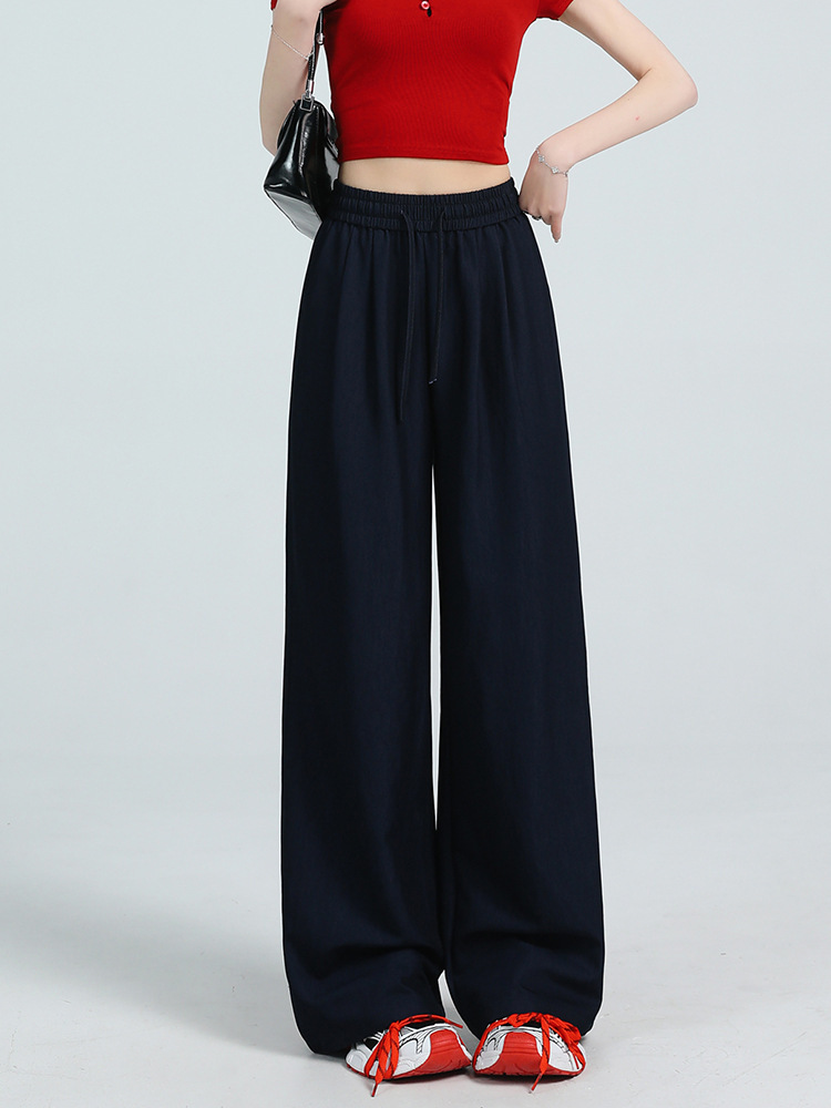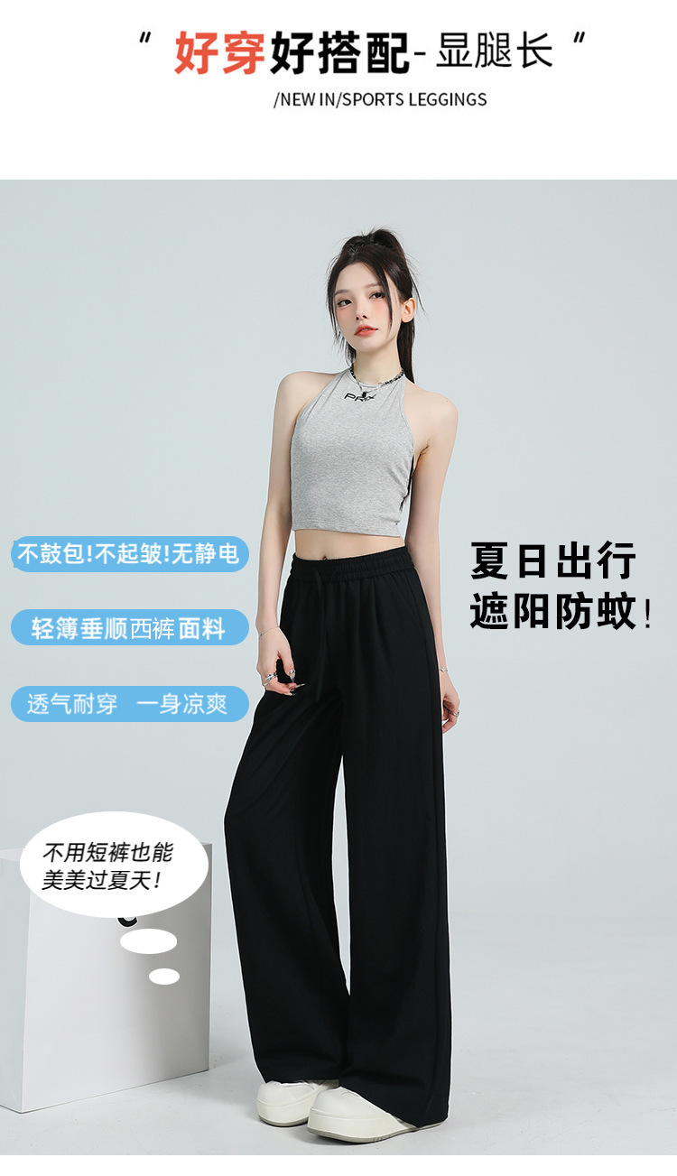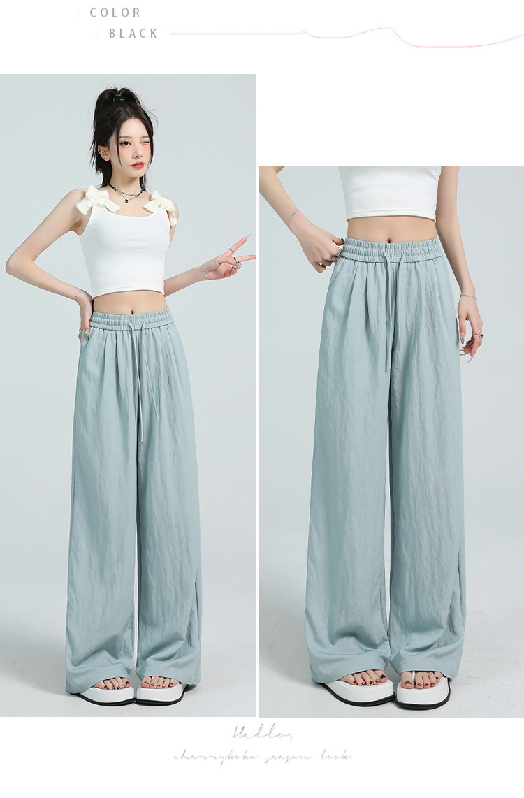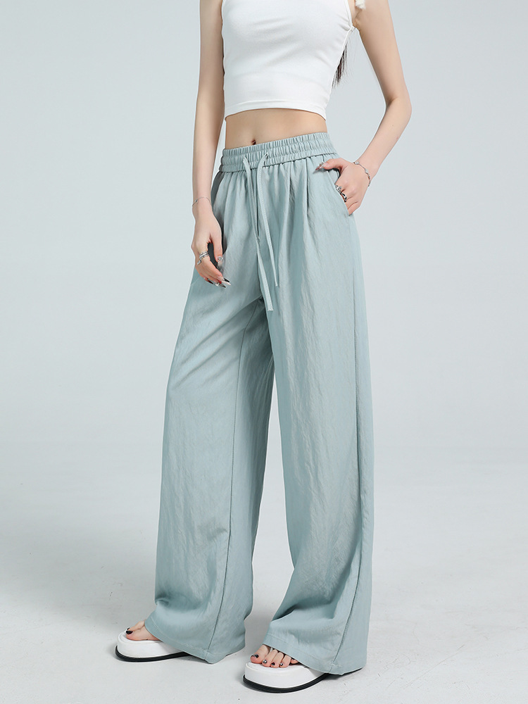 2025夏季天丝薄款阔腿裤防暑冰丝裤女百搭慵懒松弛垂感拖地裤女