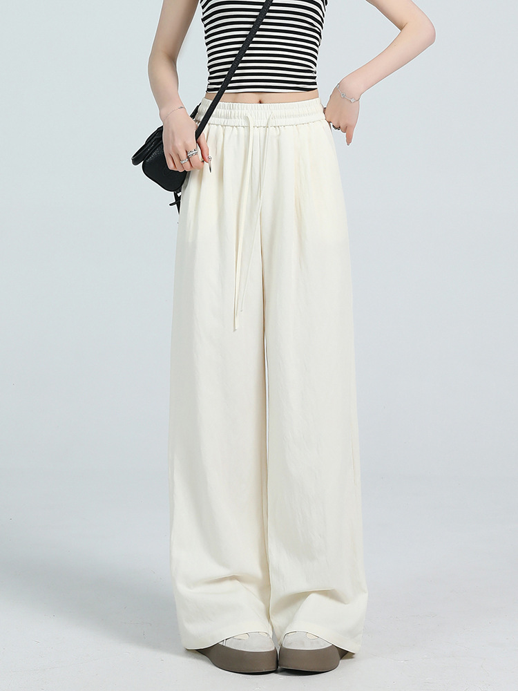2025 여름 텐셀 얇은 와이드 레그 바지 여름 방열 아이스 실크 바지 여자 올매치 게으른 슬랙 더미 바지
