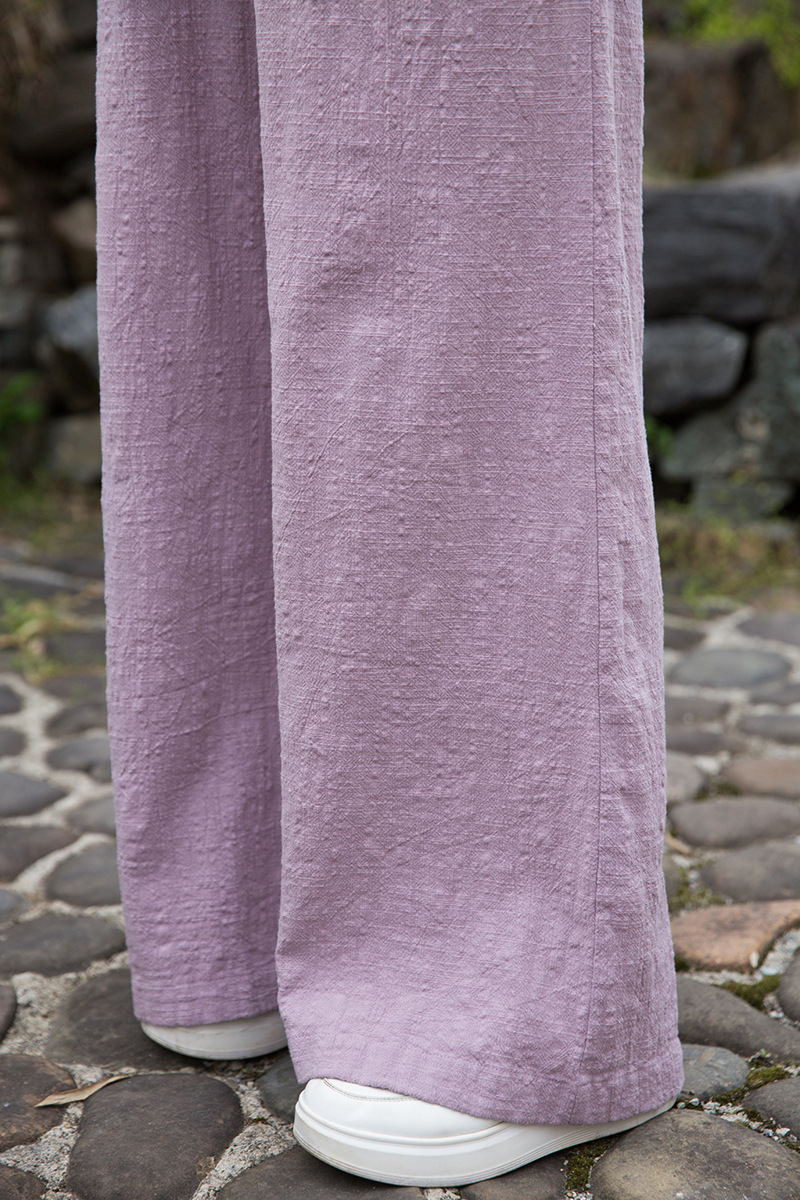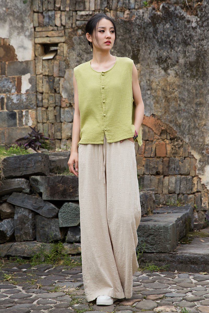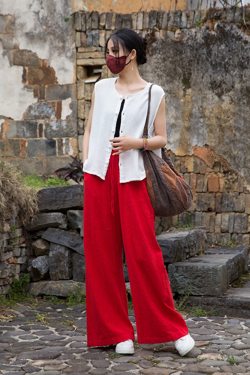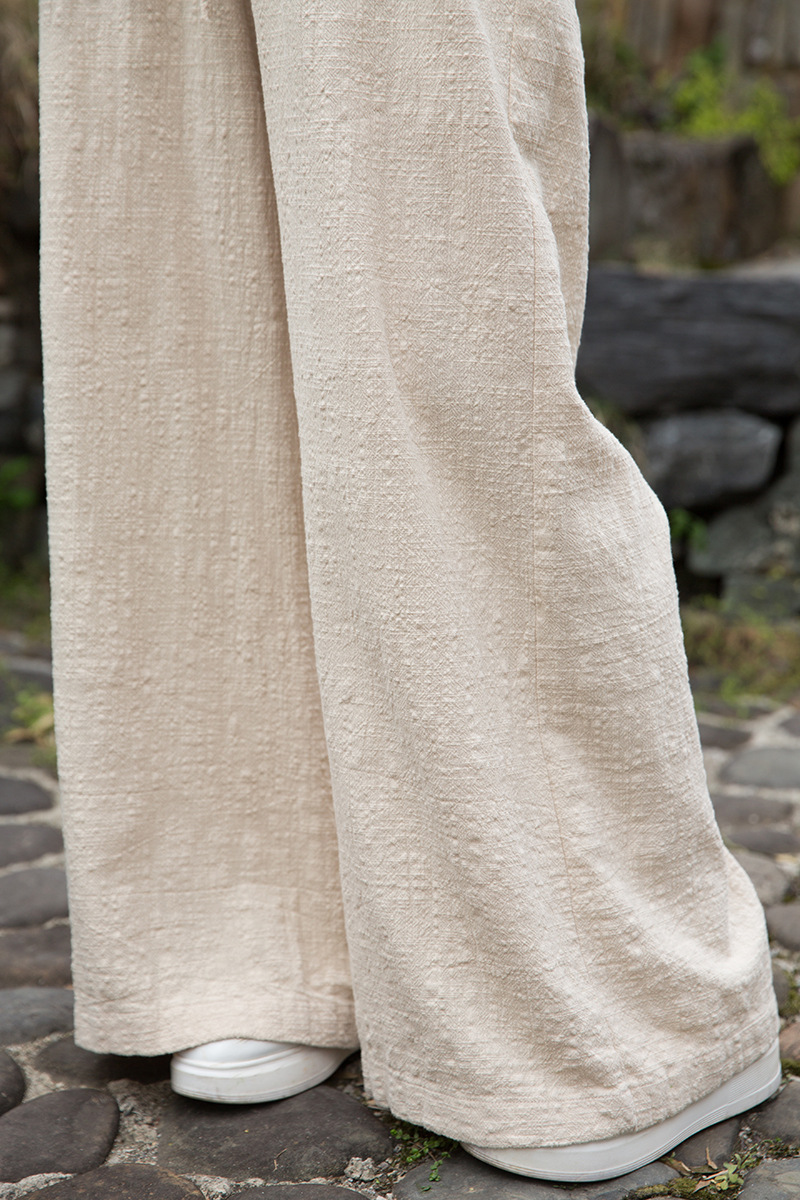 2025 년 여름면 및 린넨 여성 의류 새로운 슬러브면 모래 세척 오래된 바지 명상 얇은 여성의 넓은 다리 바지
