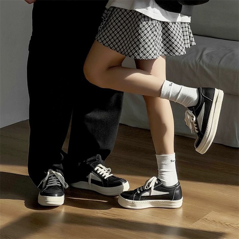 남녀공용 운동화, 로우탑 캐주얼, 내마모성, 하이스트리트 플랫, 다용도 천연가죽, 키높이 기어솔 운동화, 트렌디스토어 가기