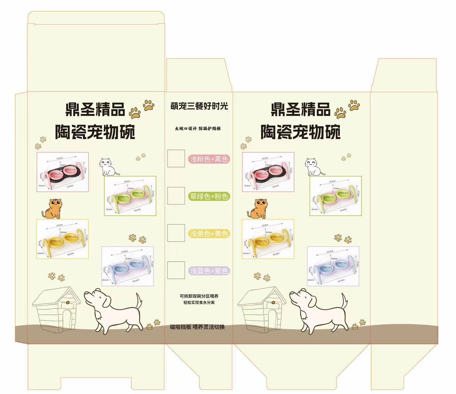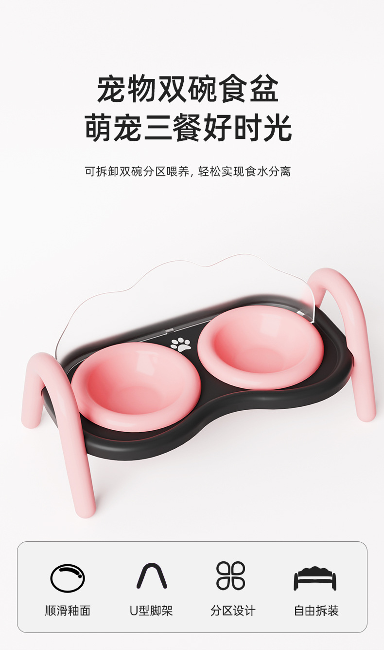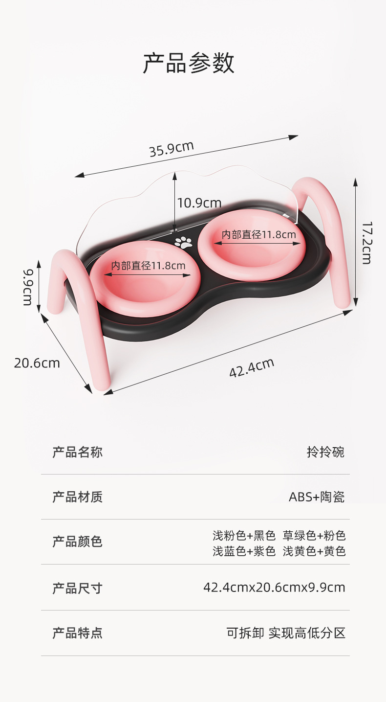 새로운 일본과 한국 세라믹 고양이 그릇 크림 스타일 애완 동물 더블 그릇 안티 티핑 개 분지 마시는 투인원 애완 동물 그릇