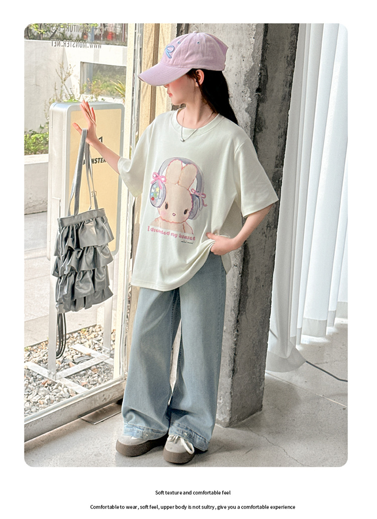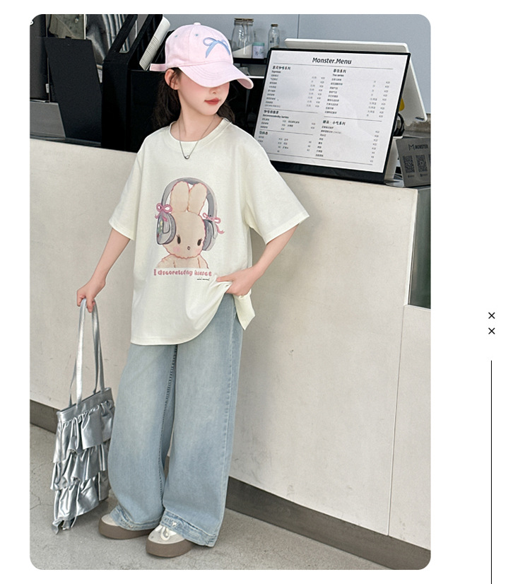 여아 반팔 티셔츠 여름 2025 새로운 스타일 여아 중대형 아동복 중학생 여아 여름 상의 트렌디 T스토어 가기
