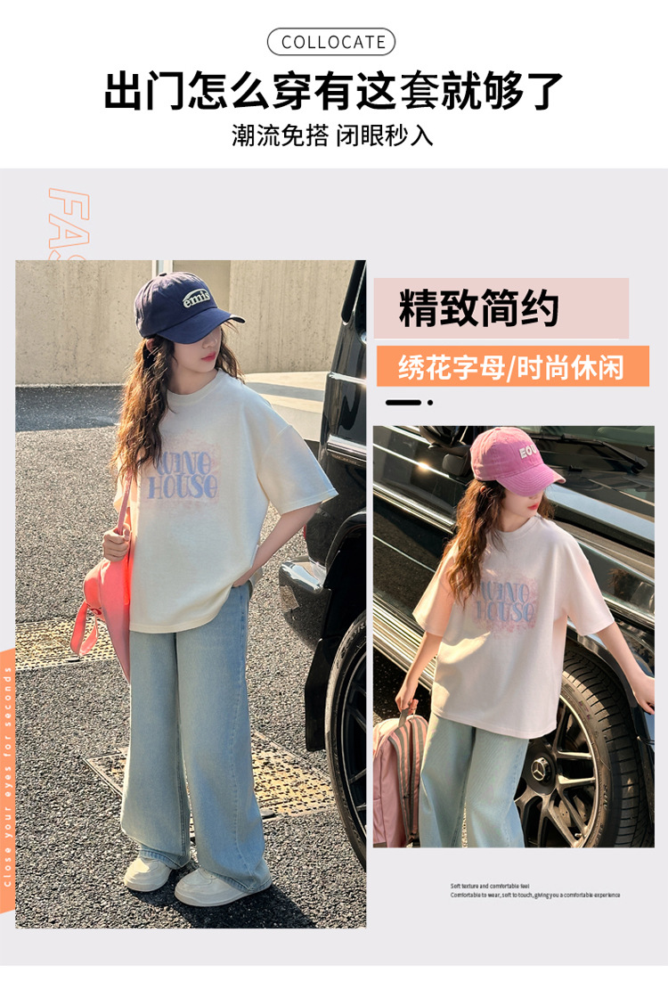 여아 반팔 티셔츠 여름 2026 신상 여중생 세련된 세트 중학생 여아 여름 상의 트렌디 티셔츠스토어 가기