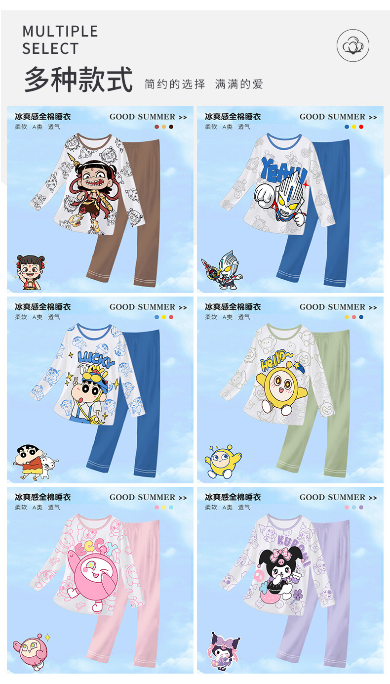 소년 소녀를위한 새로운 면 잠옷 여름 초박형 클래스 통기성 어린이 가정 옷 세트 아기 에어컨 옷스토어 가기
