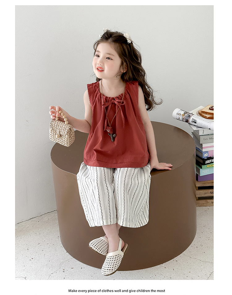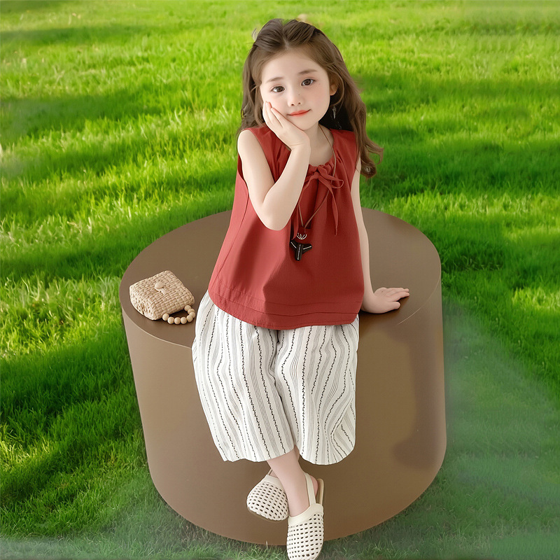 여자 한국 세트 2025 여름 새로운 패션 소녀 세련된 느슨한 자른 바지 캐주얼 투피스 트렌디스토어 가기