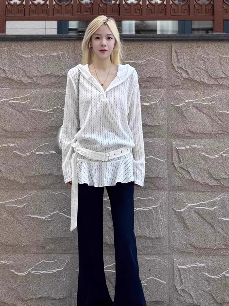 투명 얇은 긴팔 프렌치 러플 후드 자외선 차단 스웨터 여성 여름 루즈 셔츠 화이트 할로우 탑