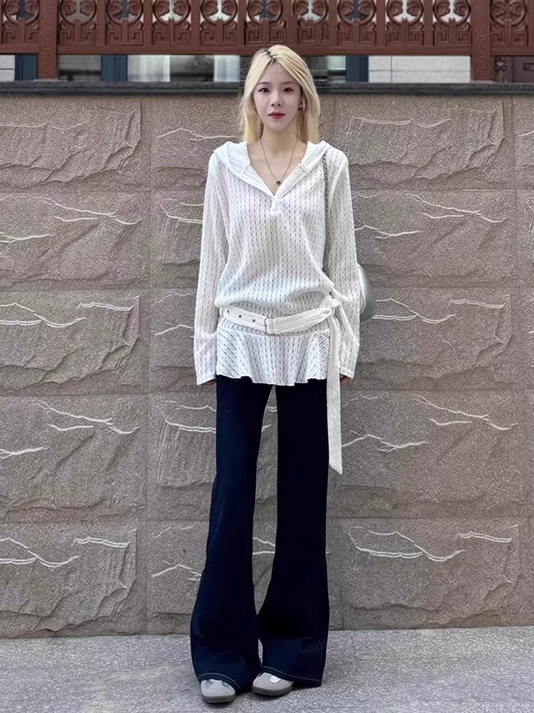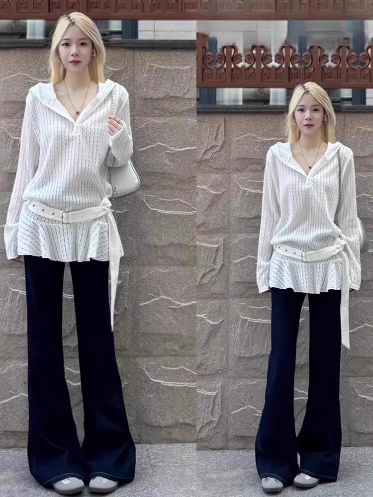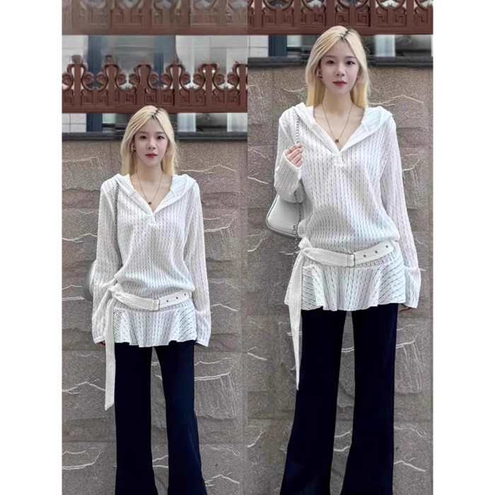 투명 얇은 긴팔 프렌치 러플 후드 자외선 차단 스웨터 여성 여름 루즈 셔츠 화이트 할로우 탑스토어 가기