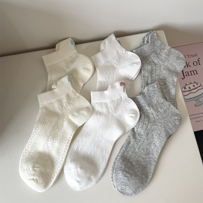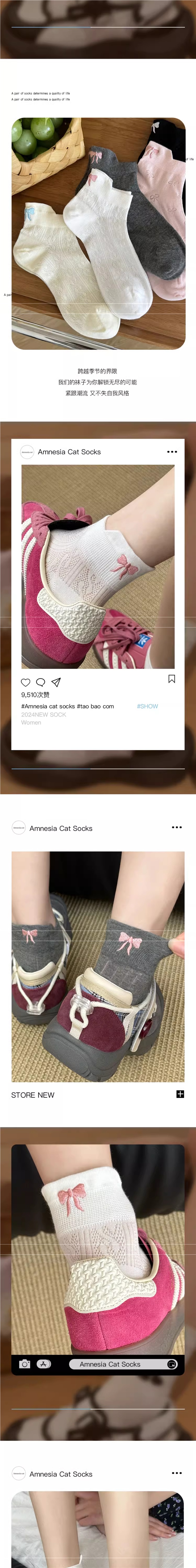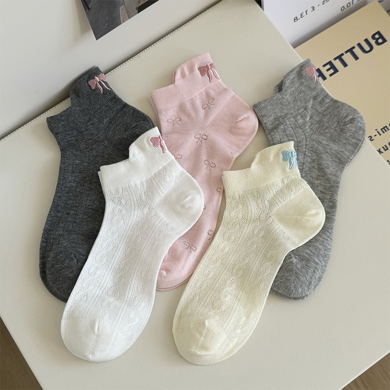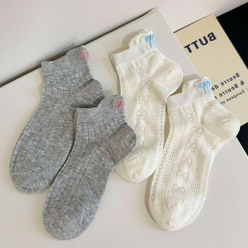 여성용 리본 양말, 귀여운 일본 발레 스타일 양말, 여름용 순면 얇은 메쉬 흰색 양말, 여름용스토어 가기
