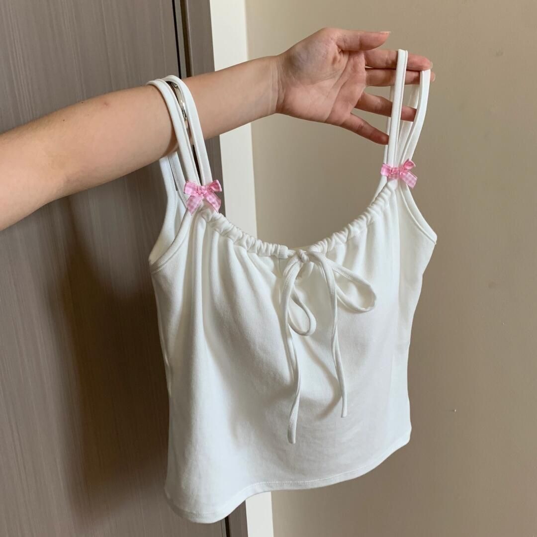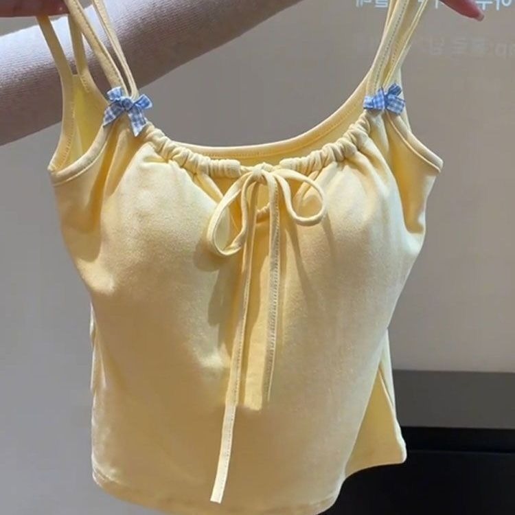 여름 더블 숄더 스트랩 보우 탑 가슴 패드 캐미솔 여성용 아메리칸 핫 걸 아름다운 등 베이스 슬림 핫 탑스토어 가기