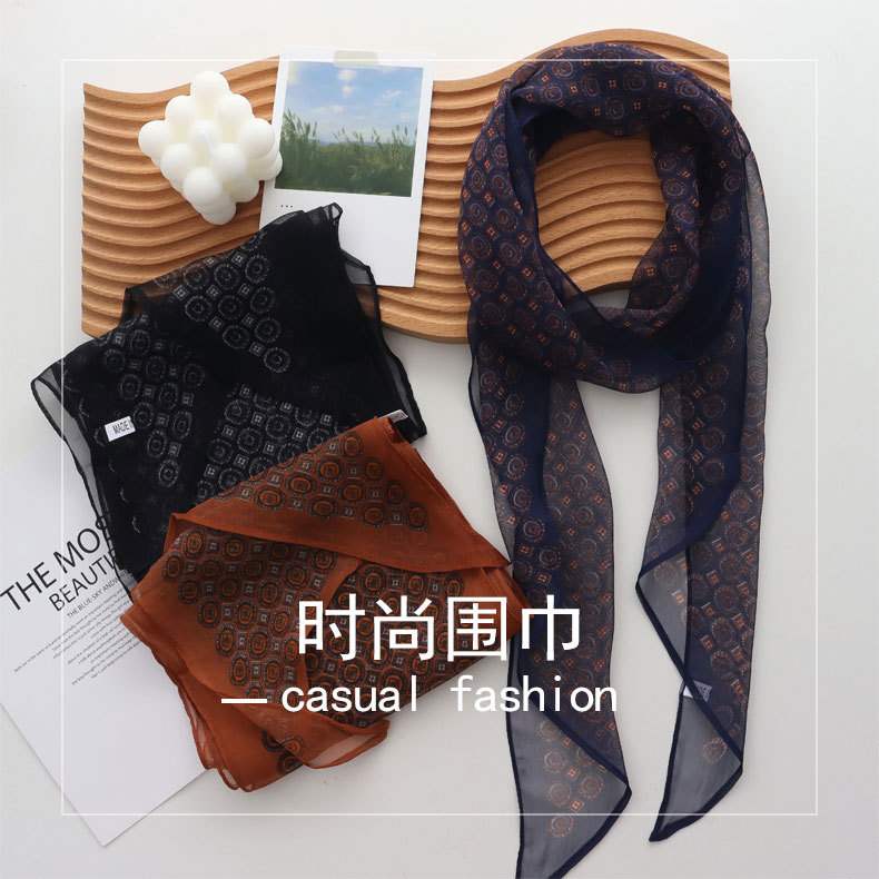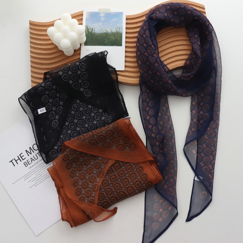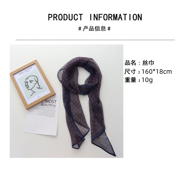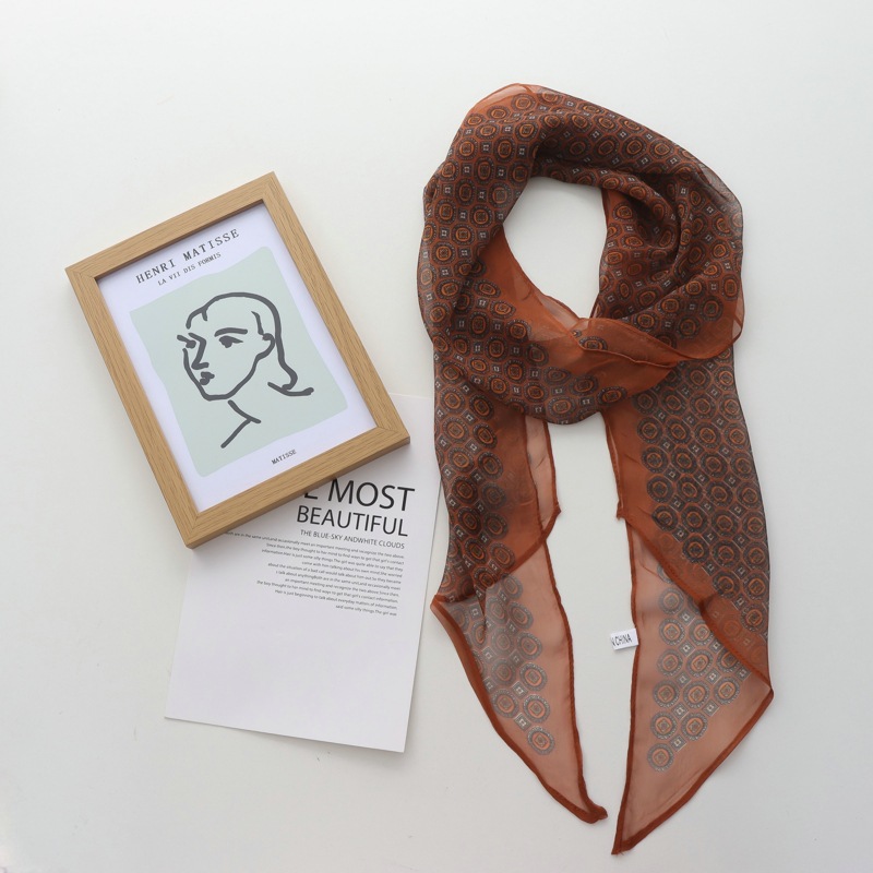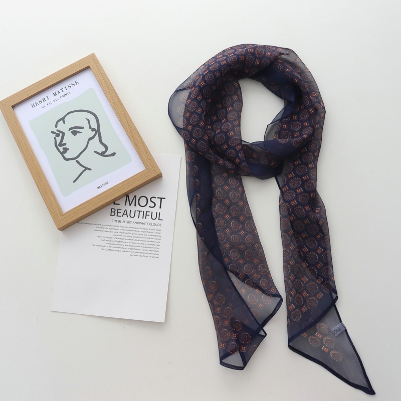2025 신작 봄 여름 조젯 리본 리본 롱 스카프 가볍고 패셔너블한 노안 목 스카프 실크 스카프스토어 가기