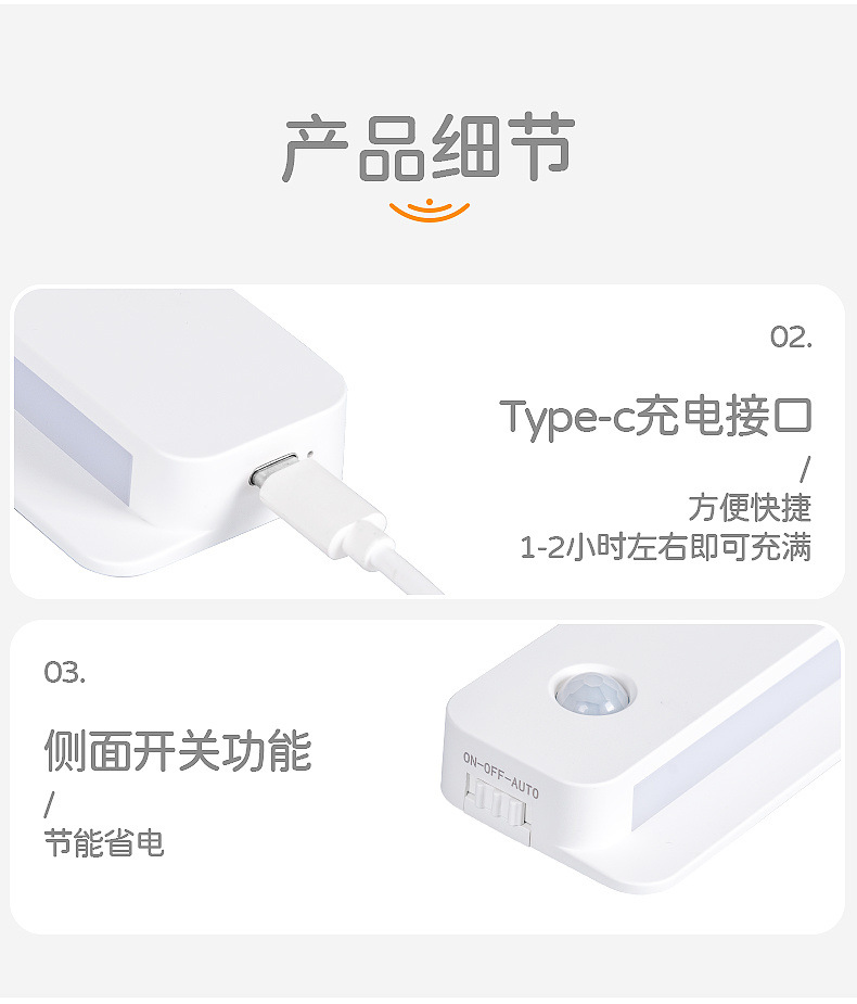지능형 무선 측면 발광 인체 센서 램프 옷장 침실 통로 욕실 자기 충전 야간 조명 국경 간스토어 가기
