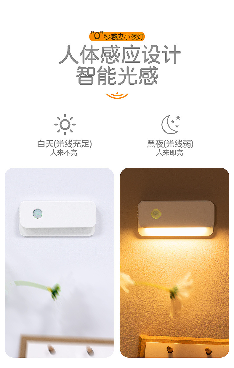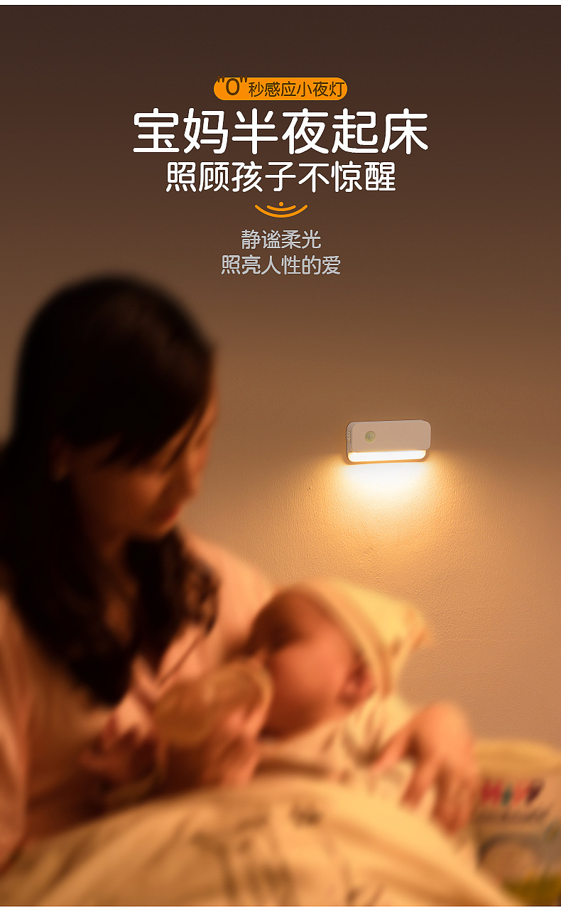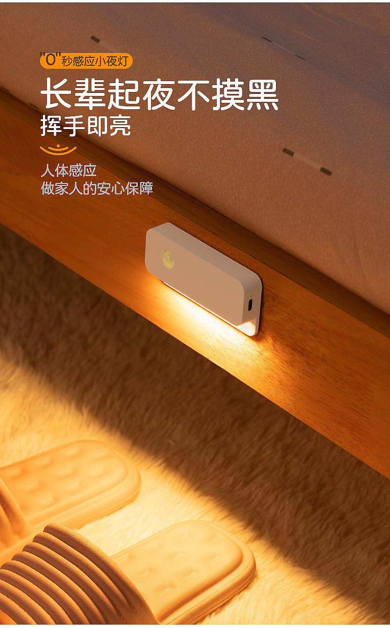지능형 무선 측면 발광 인체 센서 램프 옷장 침실 통로 욕실 자기 충전 야간 조명 국경 간