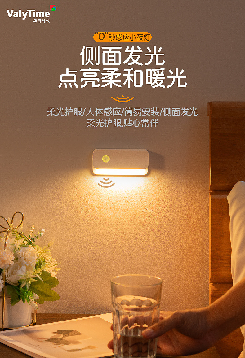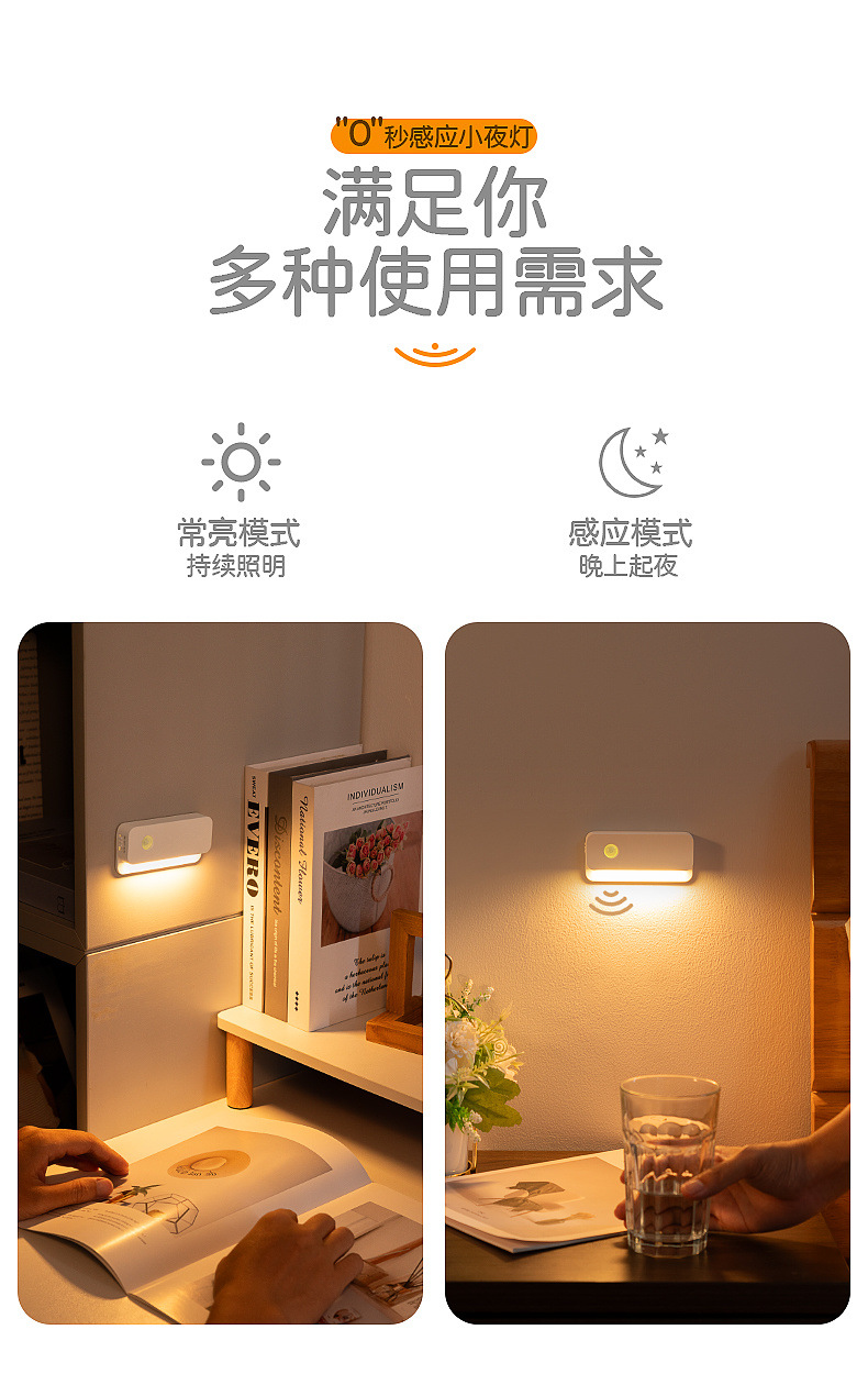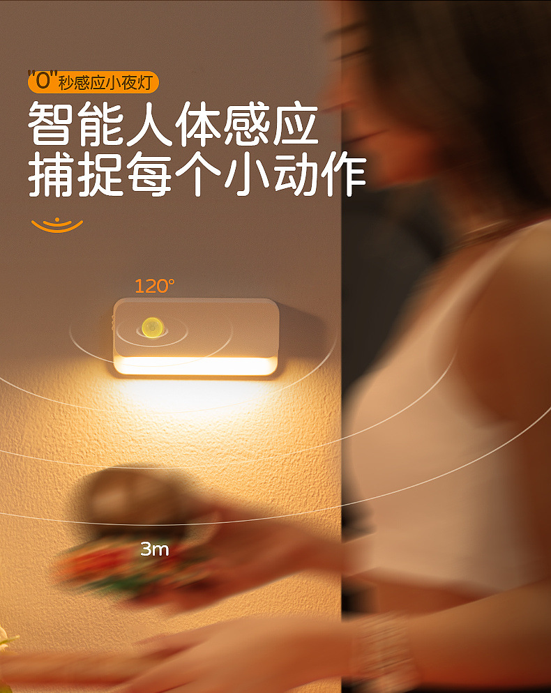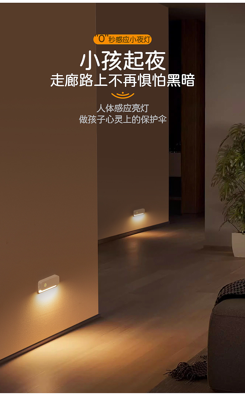 지능형 무선 측면 발광 인체 센서 램프 옷장 침실 통로 욕실 자기 충전 야간 조명 국경 간