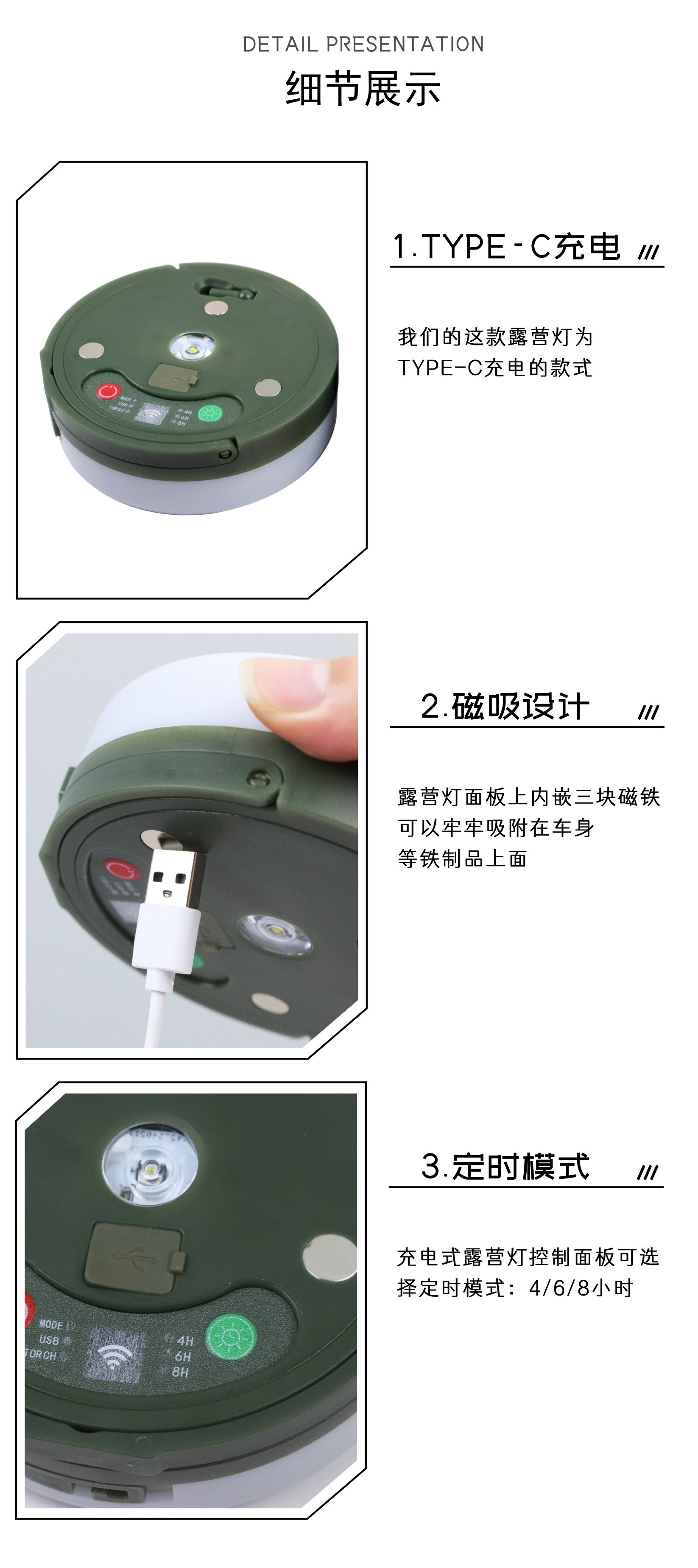 • 자기 충전 모델 - Type-C + 리모컨 - 색상 - 10.1m 등