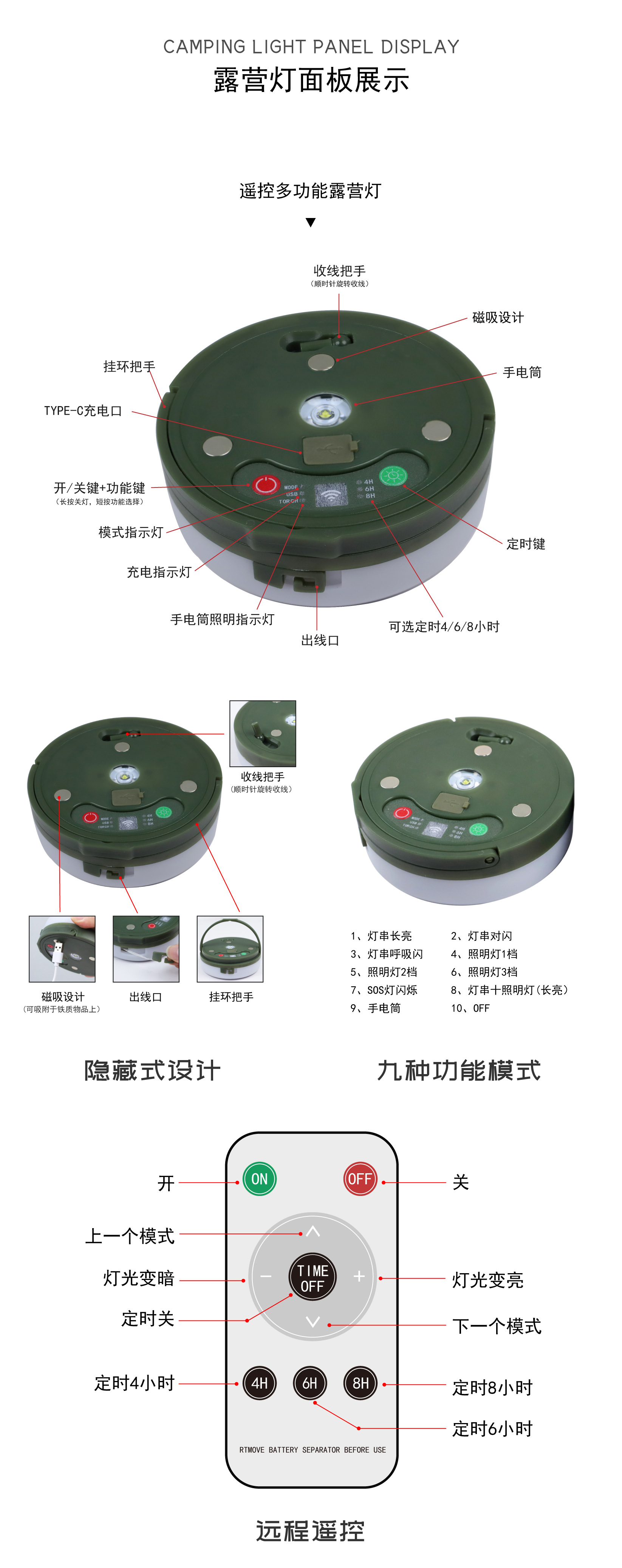 • 자기 충전 모델 - Type-C + 리모컨 - 약속(따뜻함 + 색상) - 조명 10.1m개
