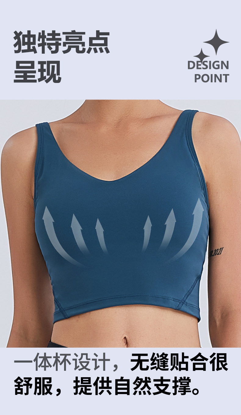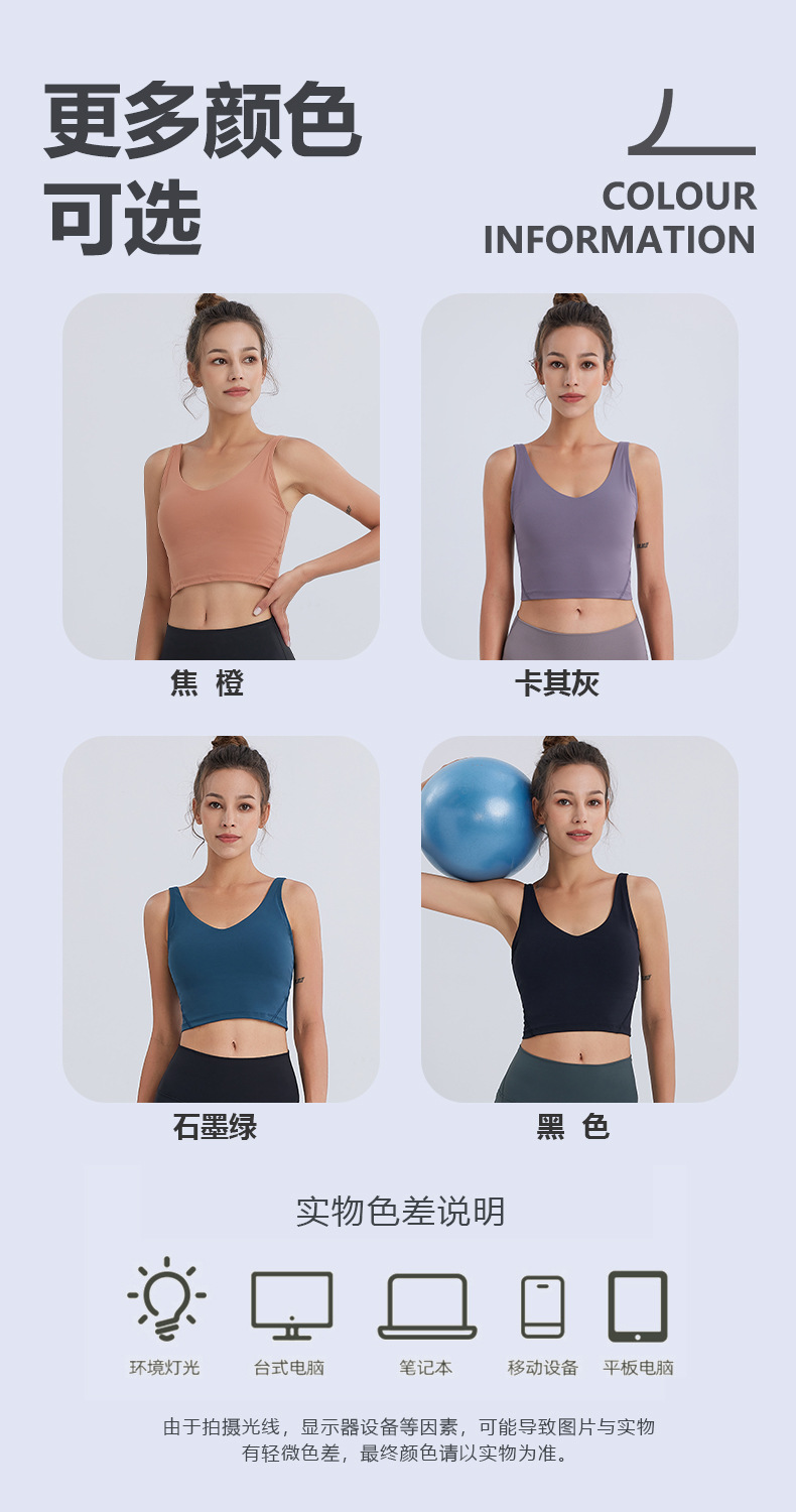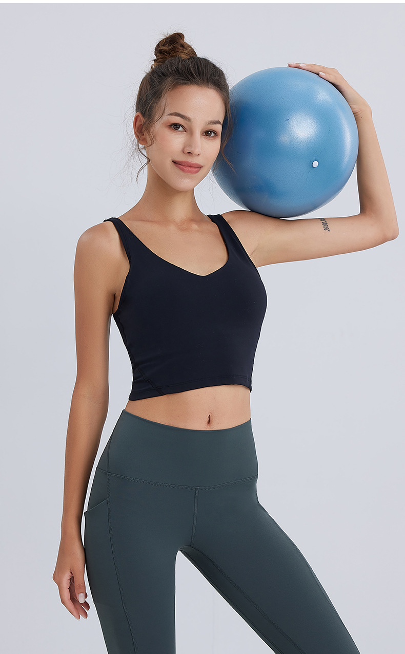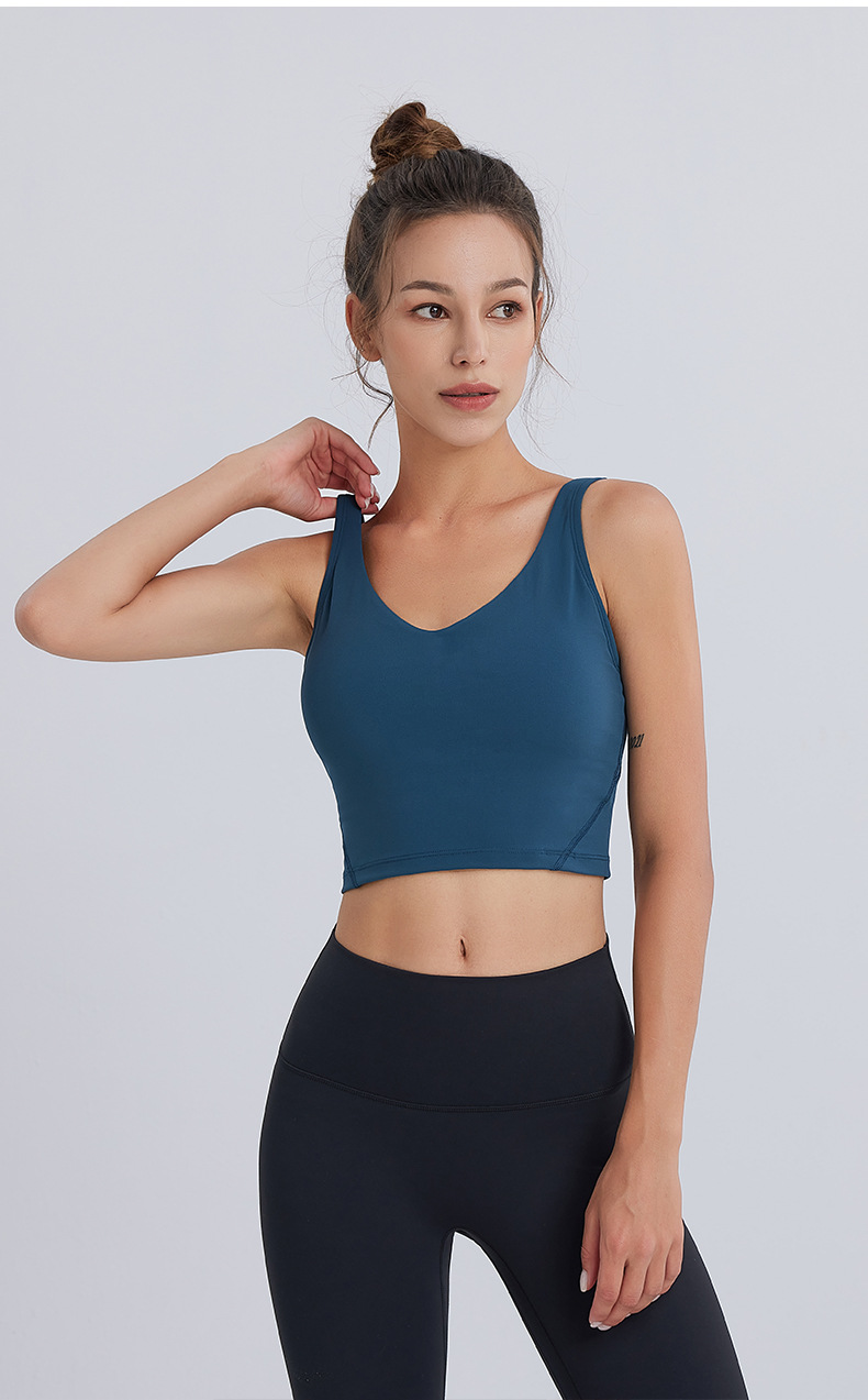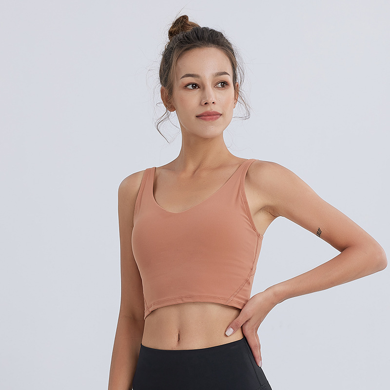 새로운 누드감 편안한 스포츠 브라 통기성 탈부착 가능한 패드 요가 브라 아름다운 등라인 피트니스 조끼 여성용 조끼 스타일
