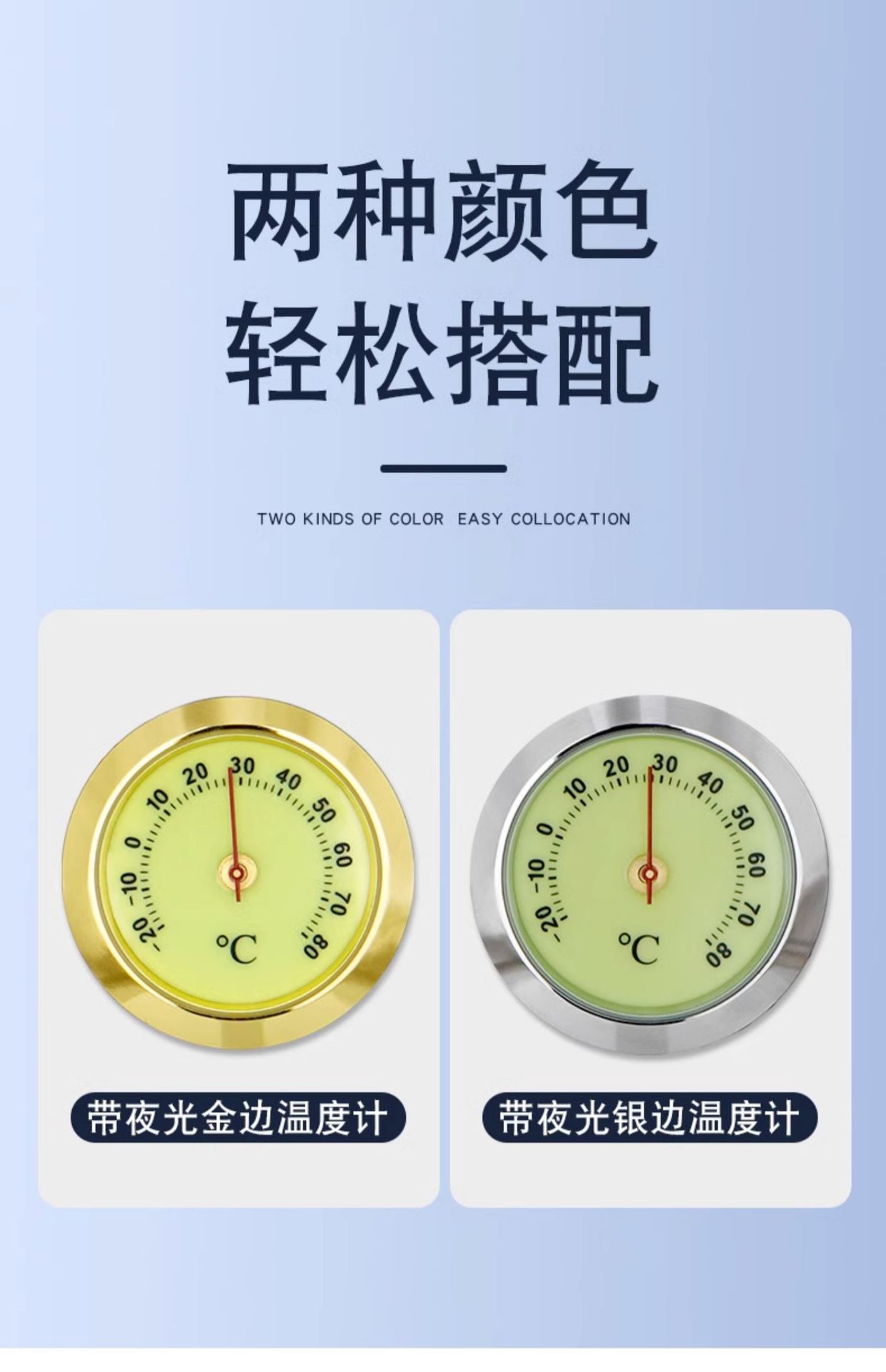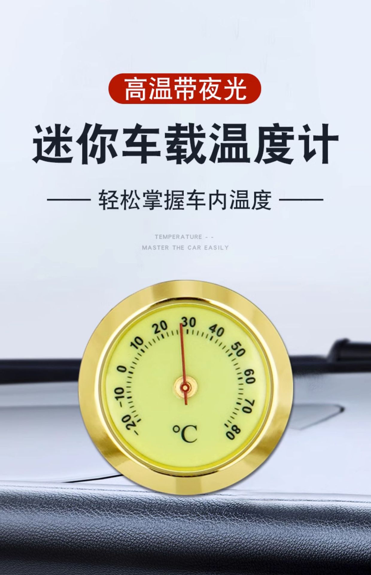 • 야광 골드 엣지가 장착된 차량용 50 온도계