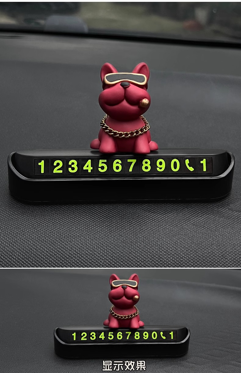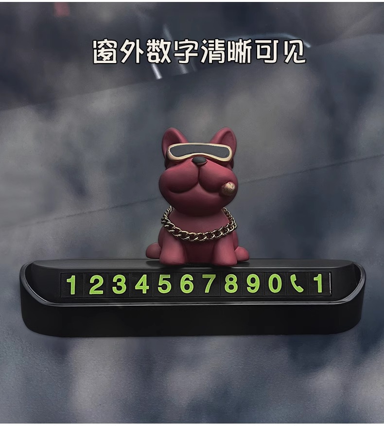 프렌치 불독 자동차 주차 카드 임시 주차 전화 번호판 장식 용품 이동 번호판 이동 카드