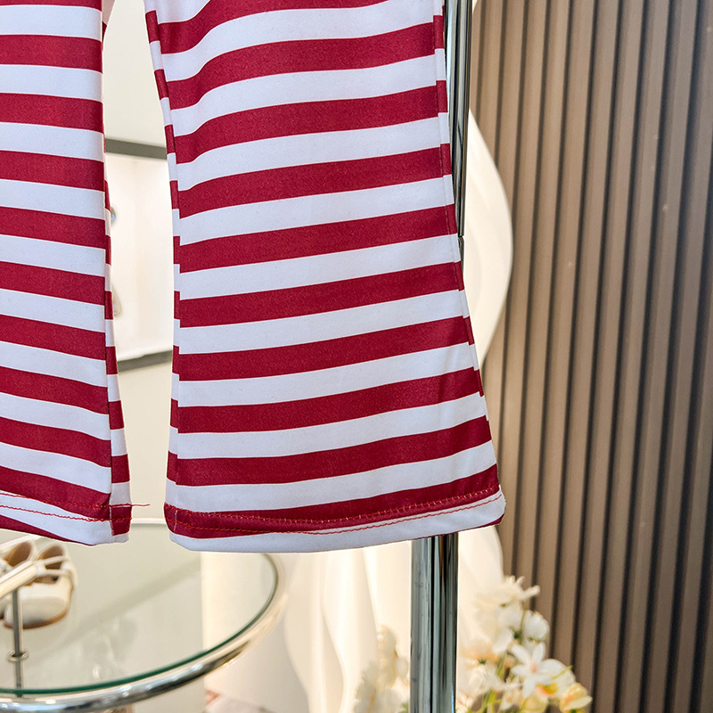 여름 어린이 반팔 티셔츠 소녀 줄무늬 플레어 바지 새로운 한국식 풀 프린트 달콤한 투피스 유행 세트