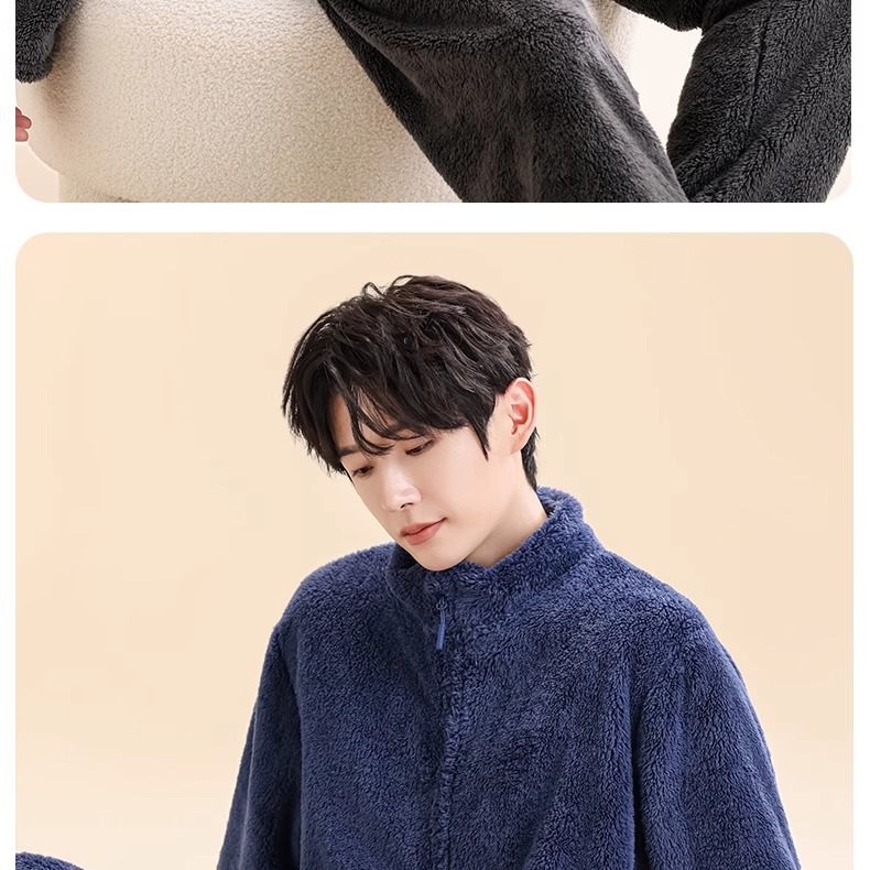 남성용 잠옷, 남성용 산호 벨벳 플러스 벨벳 두꺼운 청소년용 루즈핏 편안한 면 벨벳 따뜻한 홈웨어 세트 지퍼