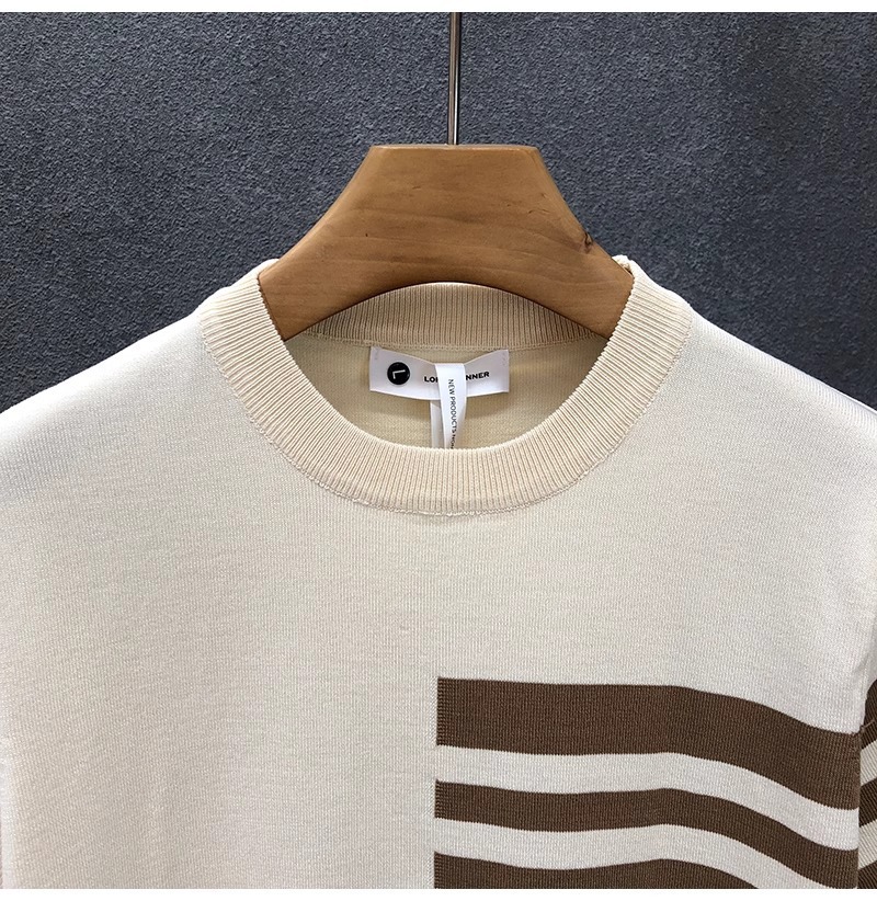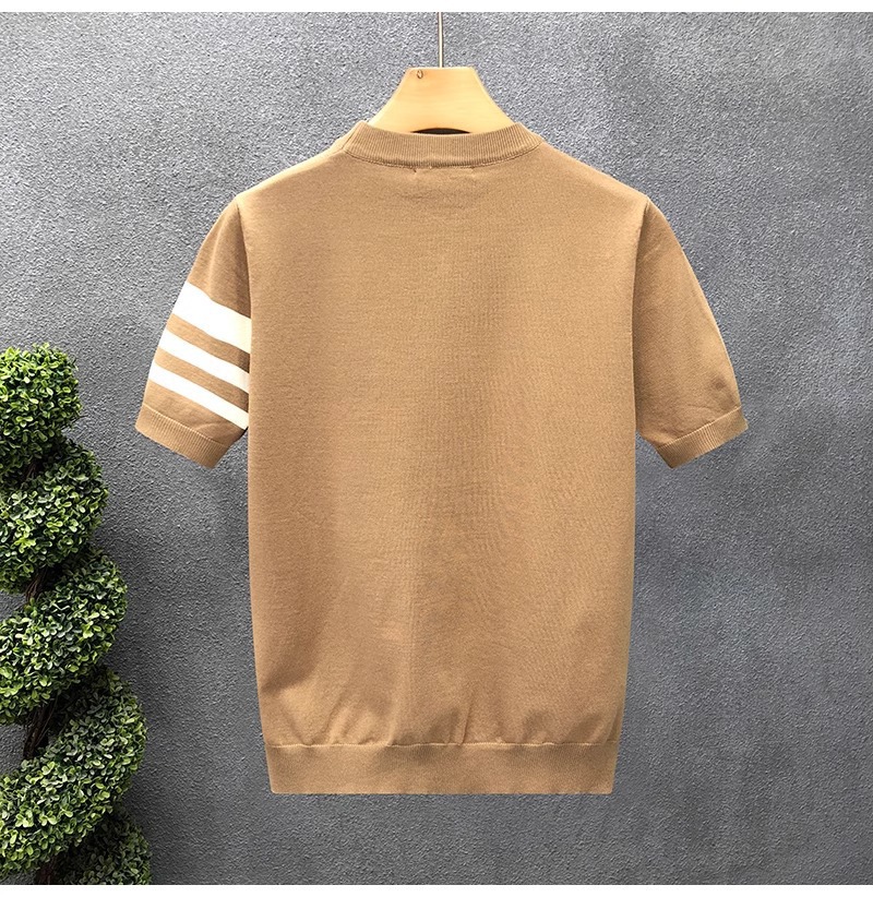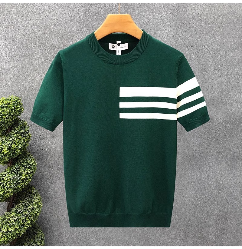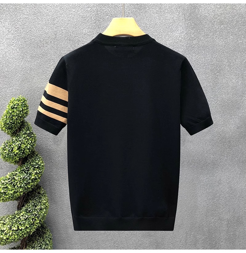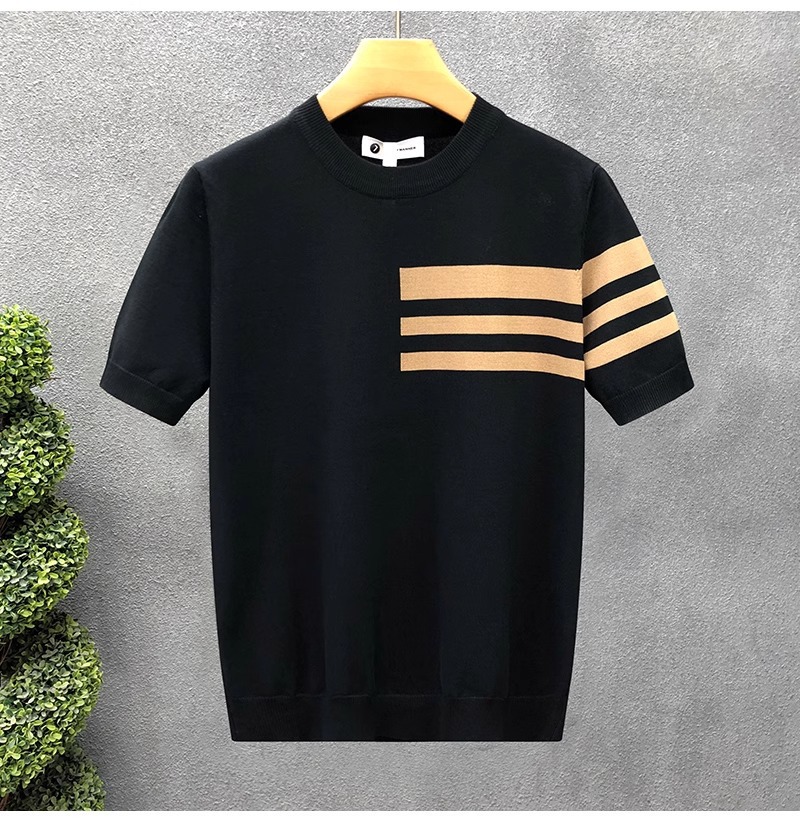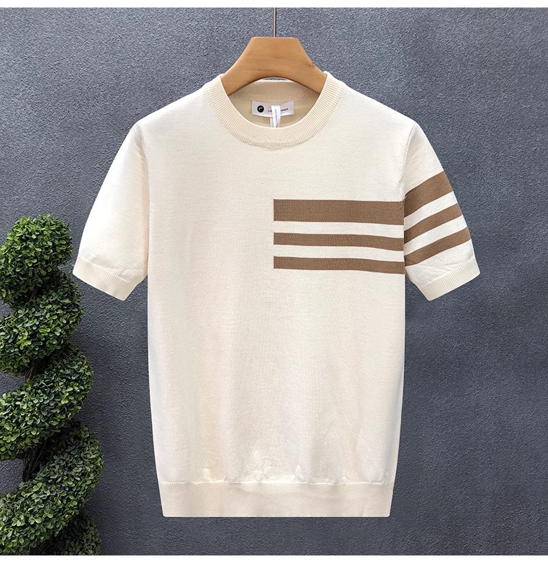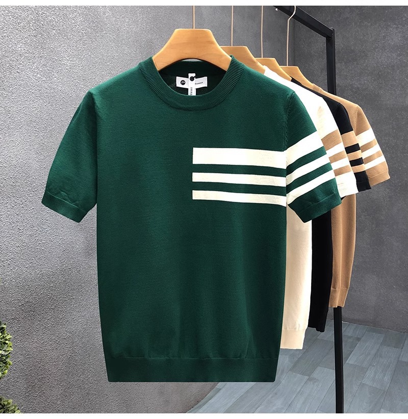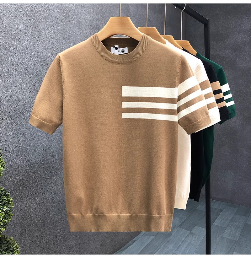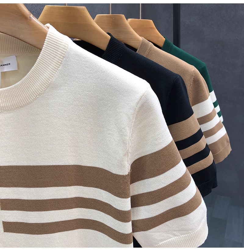 夏季新款短袖针织衫男条纹简约商务轻熟修身冰丝T恤外贸跨境t