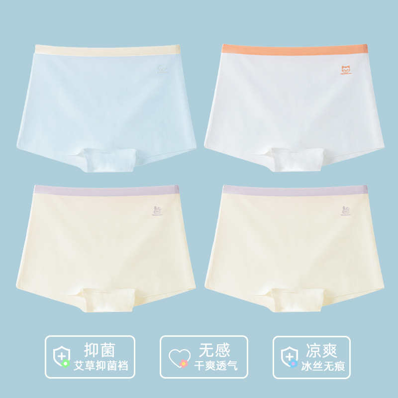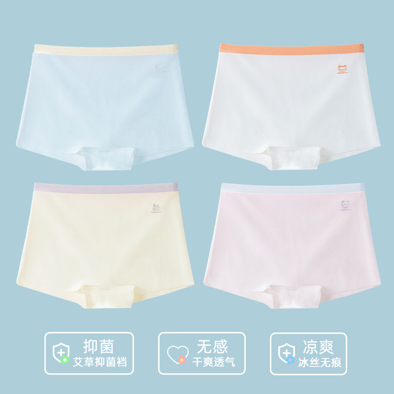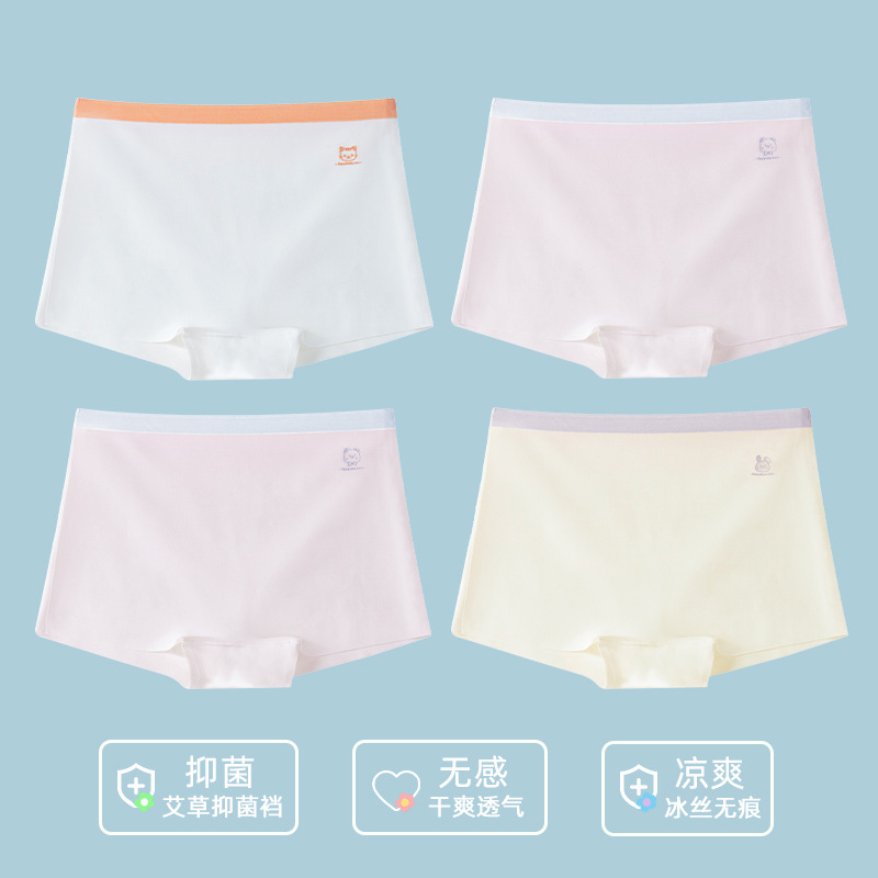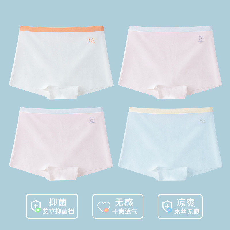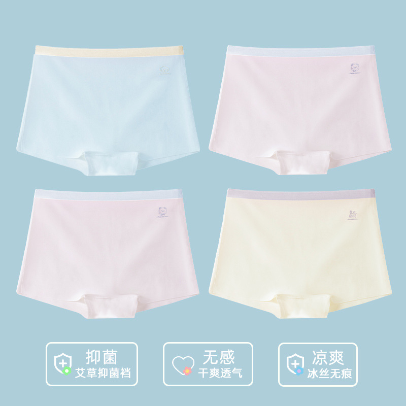 클래스 A 여아 속옷, 아이스 실크 무봉제 여아용 항균 복서 반바지, 여름용 얇고 클램핑되지 않는 PP 팬티스토어 가기