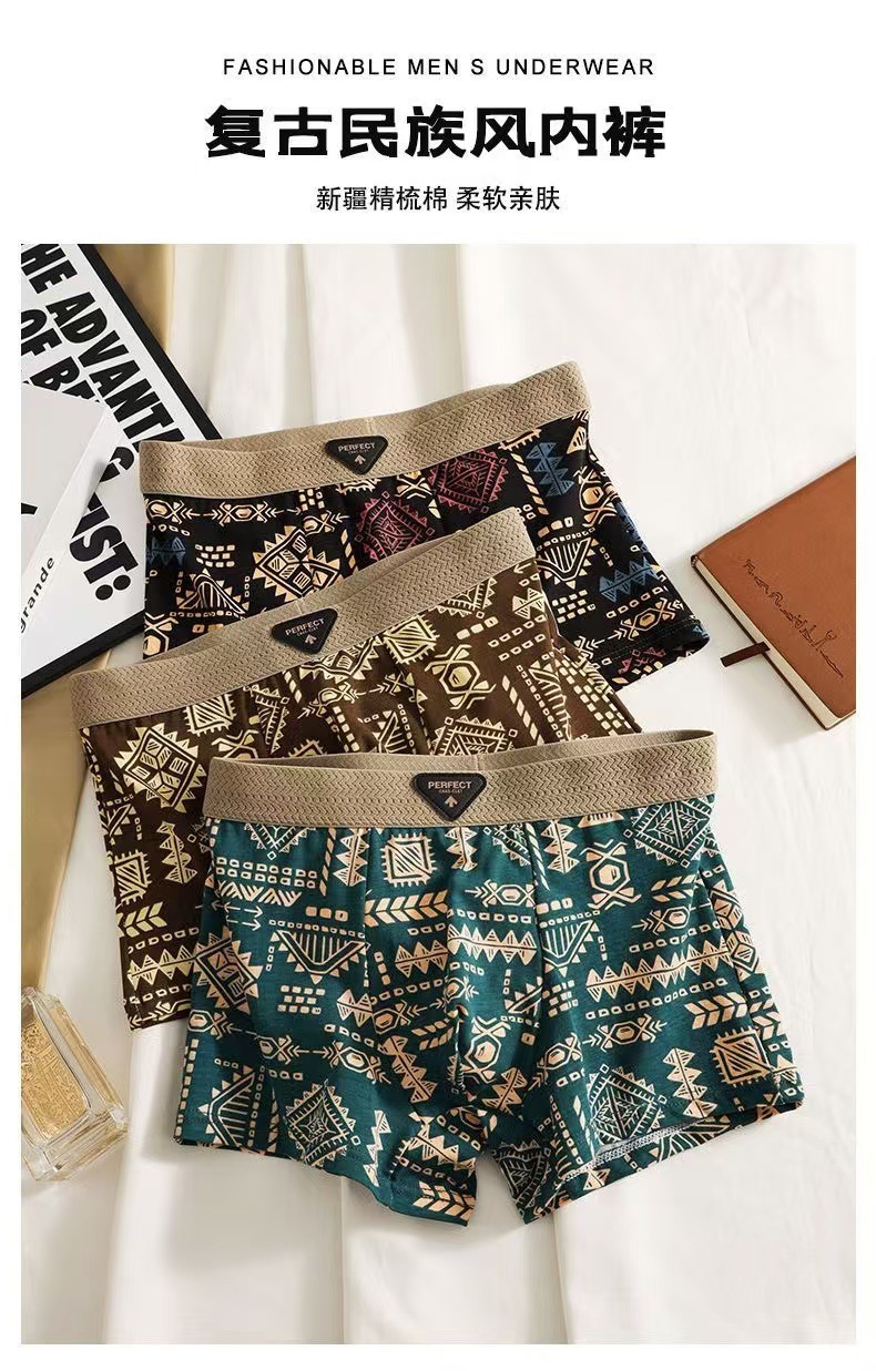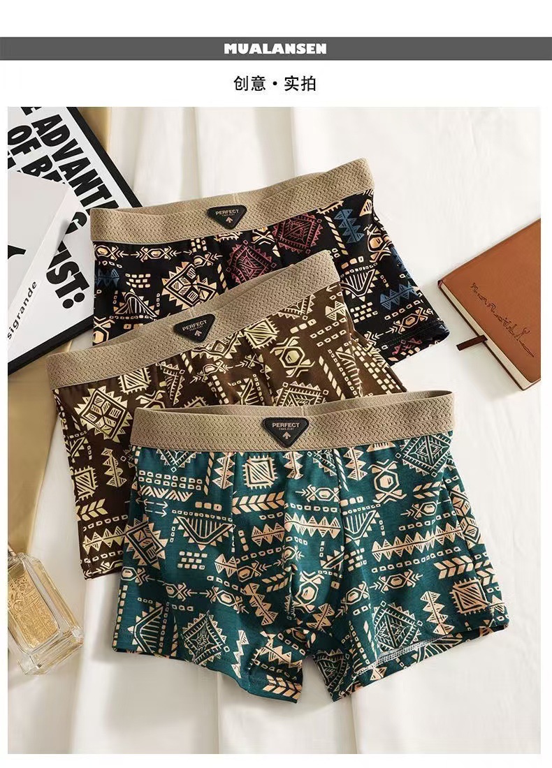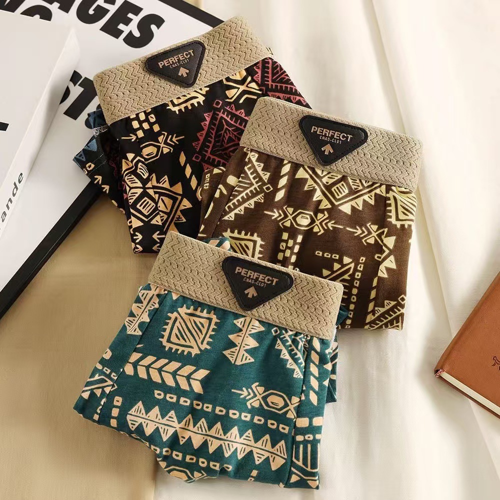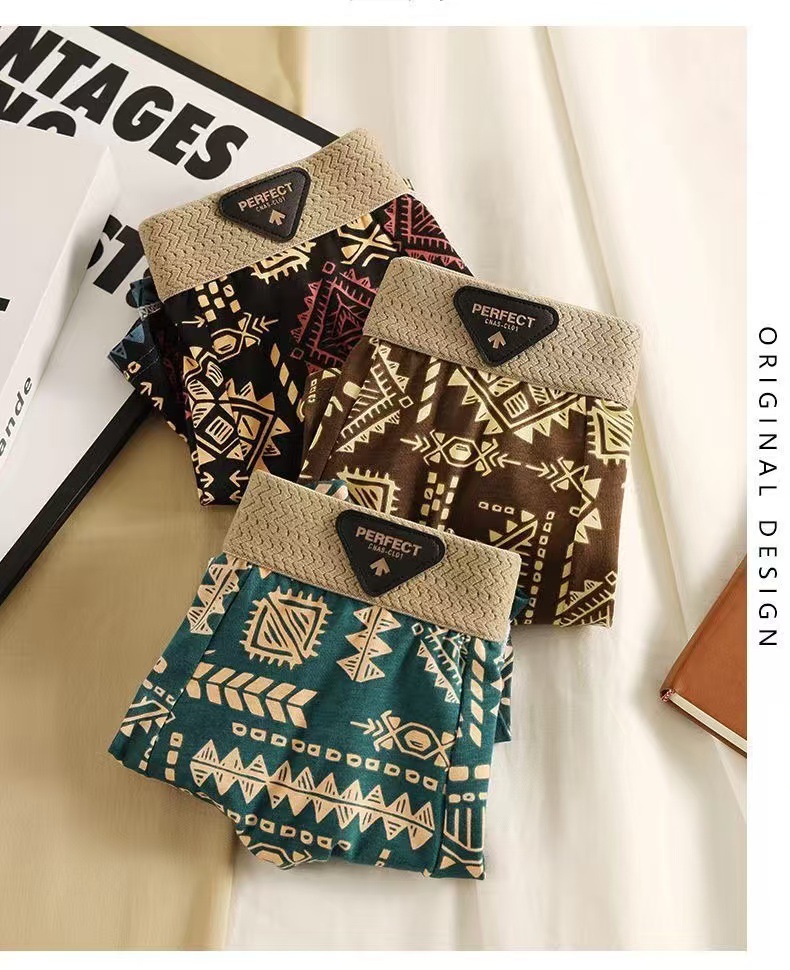 미국의 트렌드 복고풍 남성 속옷 성격 마야 인쇄 국가 조수 허리 복서 반바지 머리카락스토어 가기