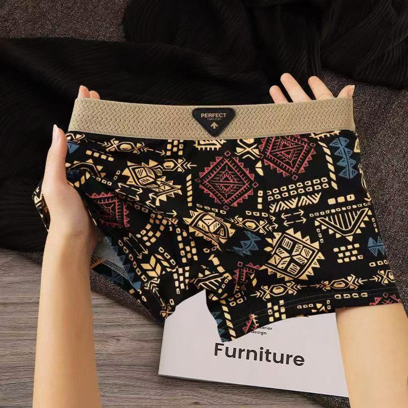 미국의 트렌드 복고풍 남성 속옷 성격 마야 인쇄 국가 조수 허리 복서 반바지 머리카락