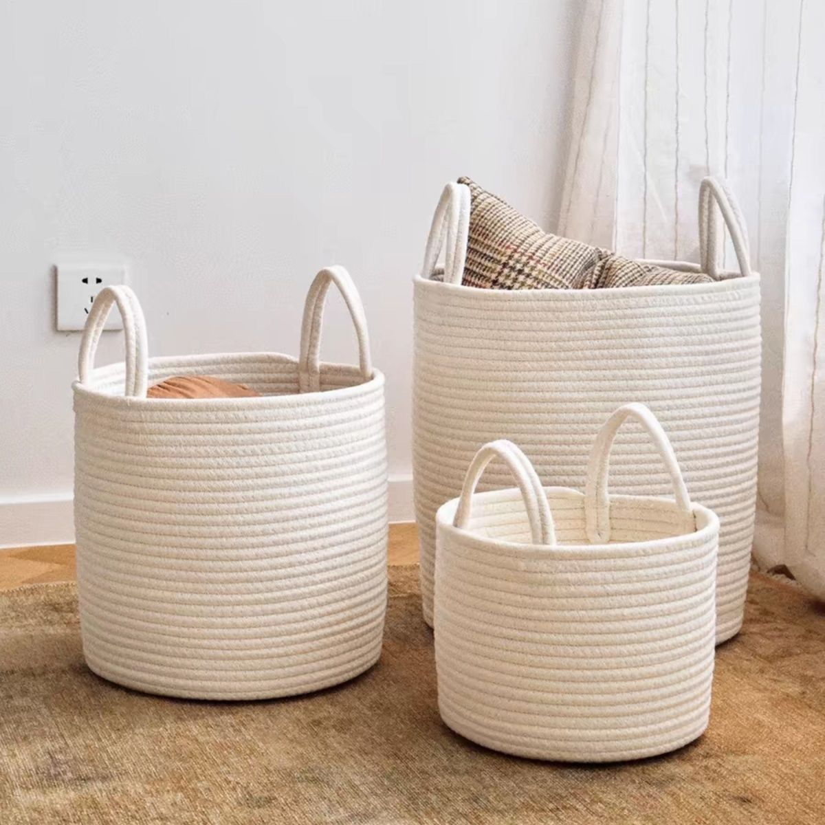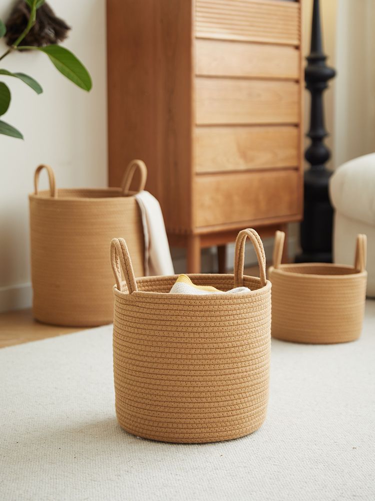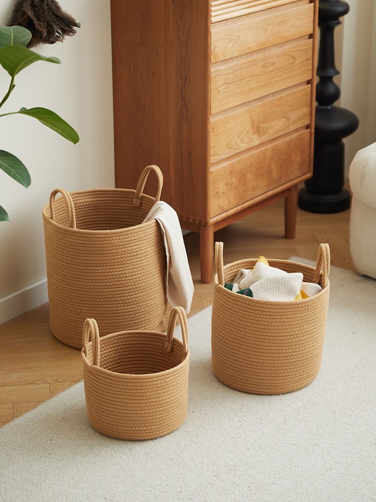 더러운 옷 보관 바구니 손으로 짠 더러운 옷 바구니 목화 및 린넨 장난감 면화 옷 바구니 보관 양동이 더러운 옷 바구니